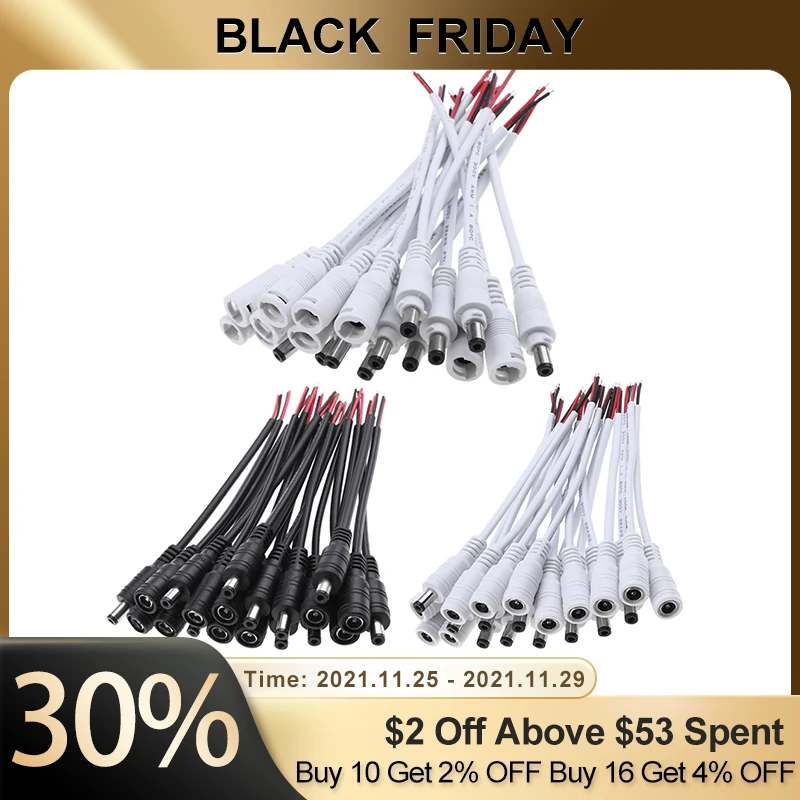 10 шт. 5,5x2,1 1224 В постоянного тока штекер + Гнездо разъем кабеля провода для светодиодной ленты светильник ильника потолосветильник света постоянного тока Светодиодная лента светильник щения разъемы
