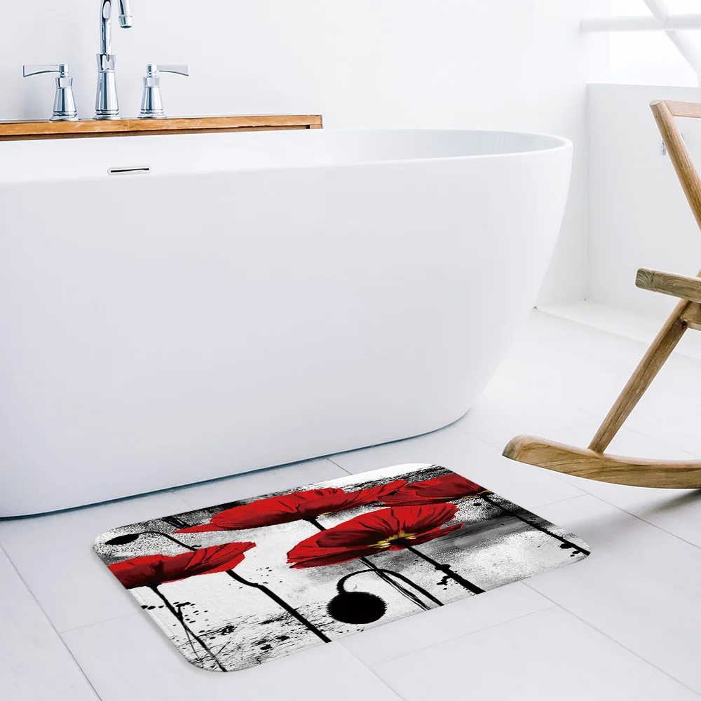 Красивый нескользящий Придверный коврик для ванной комнаты с красны...