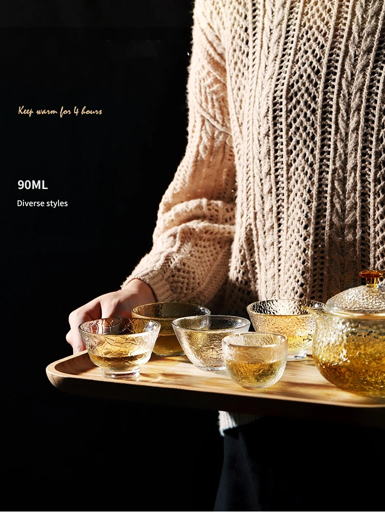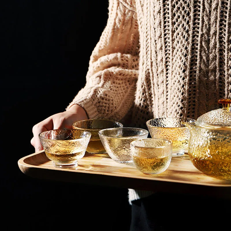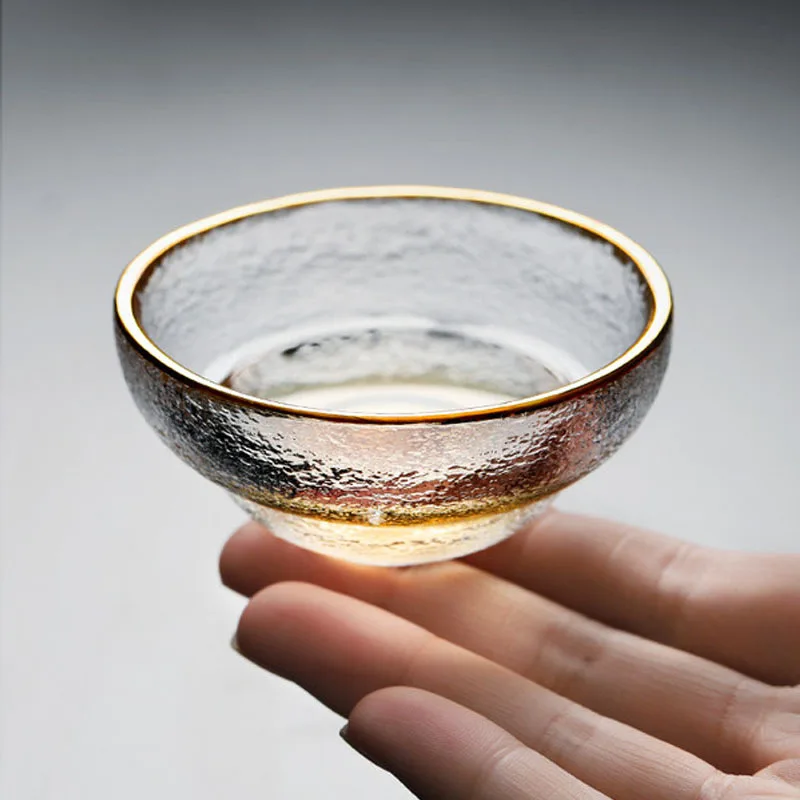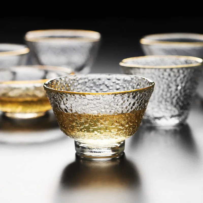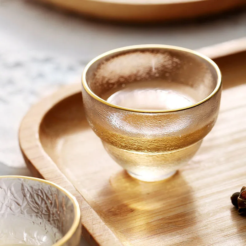 Стеклянные чашки в японском стиле с золотой оправой, небольшие Термостойкие чашки для зеленого чая кунг-фу, набор для чая Матча, бокал для вина