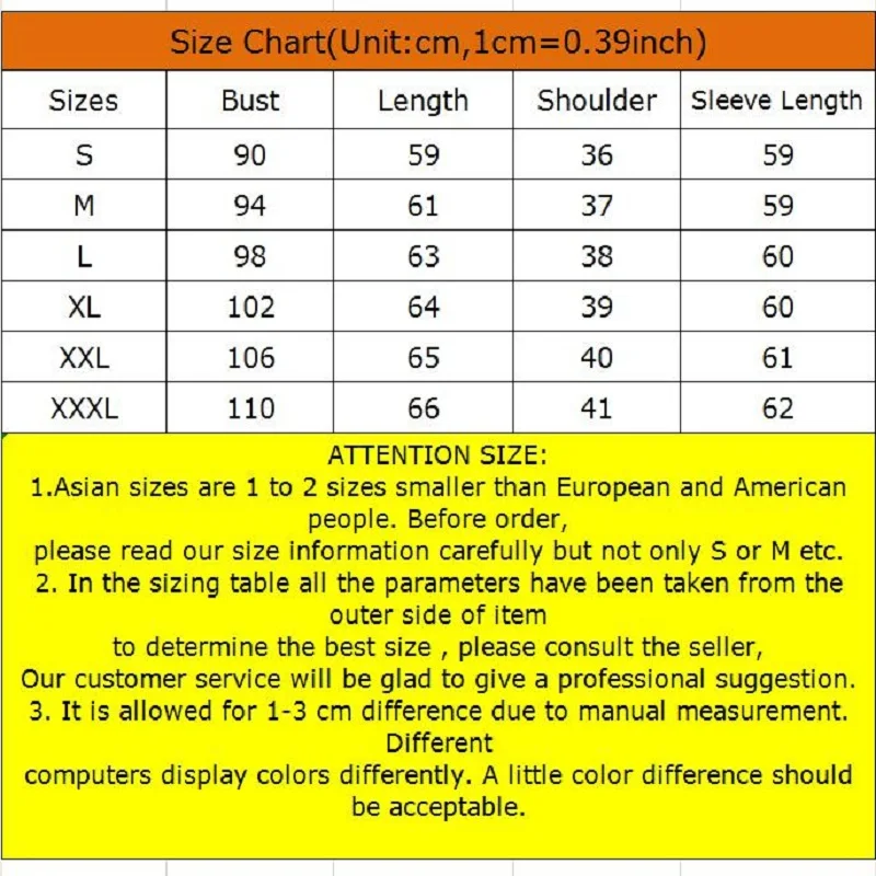 Внимание Размер: 1.Азиатские размеры на 1-2 размера меньше европейских и американских.Перед заказом, Пожалуйста, внимательно прочитайте нашу информацию о размере, но не только S или M и т. д. 2: в таблице размеров все параметры были взяты с внешней стороны изделия Чтобы определить оптимальный размер, проконсультируйтесь с продавцом, Наша служба поддержки клиентов будет рада предложить вам профессиональное предложение. 3: допускается погрешность в 1-3 см из-за ручного измерения. Разные Компьютеры отображают цвета по-разному. Возможна небольшая разница в цвете.