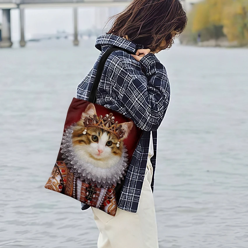 Женская сумка-тоут в викторианском стиле, винтажная Повседневная пляжная сумочка-тоут с принтом кота и собаки, модный тоут для покупок