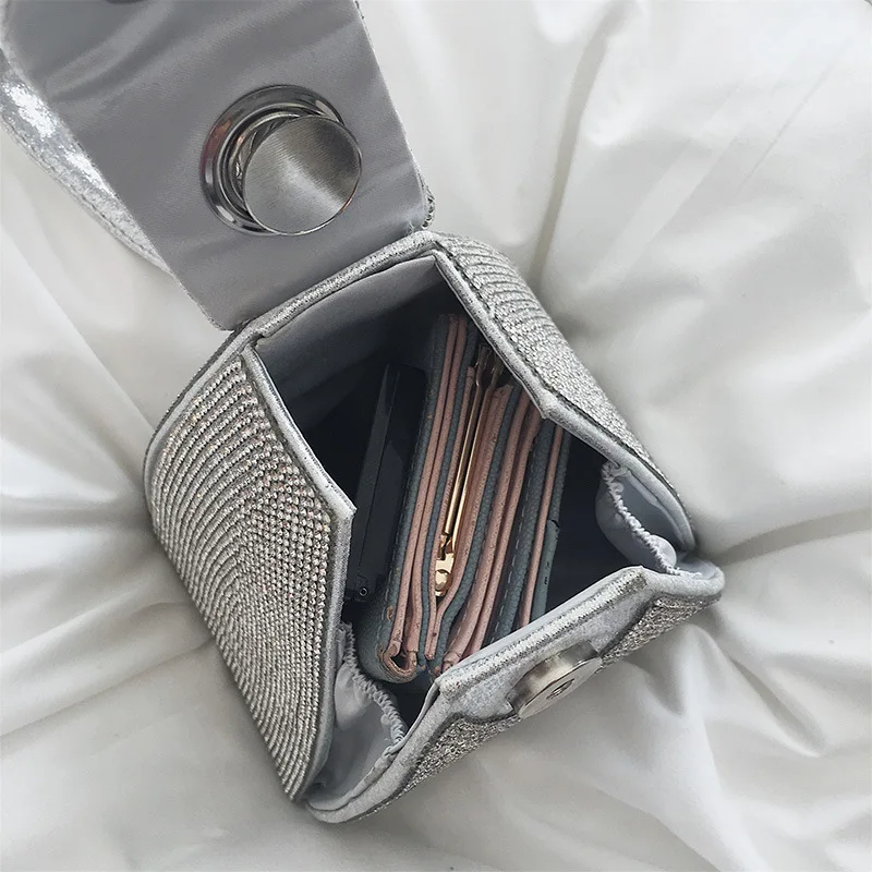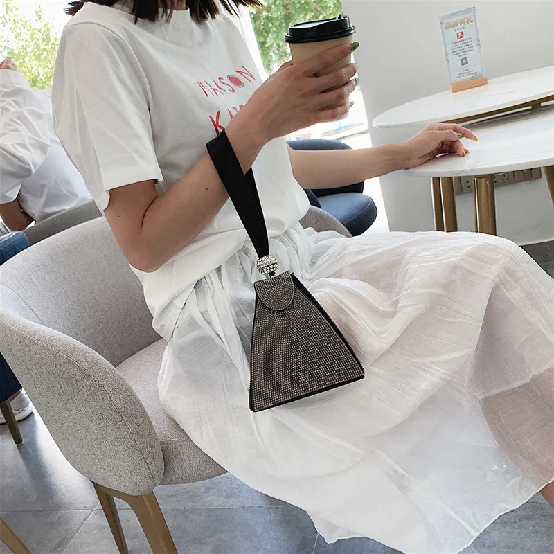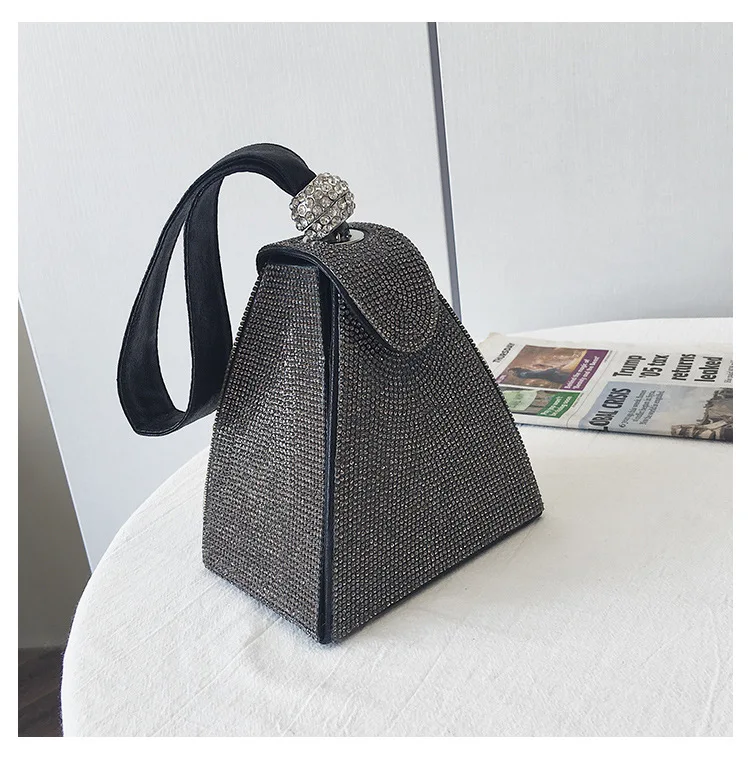 Роскошные персонализированные Стразы треугольная Сумочка для женщин 2020, вечерние дамские сумки для ужина, блестящие Серебристые черные сумки-тоут