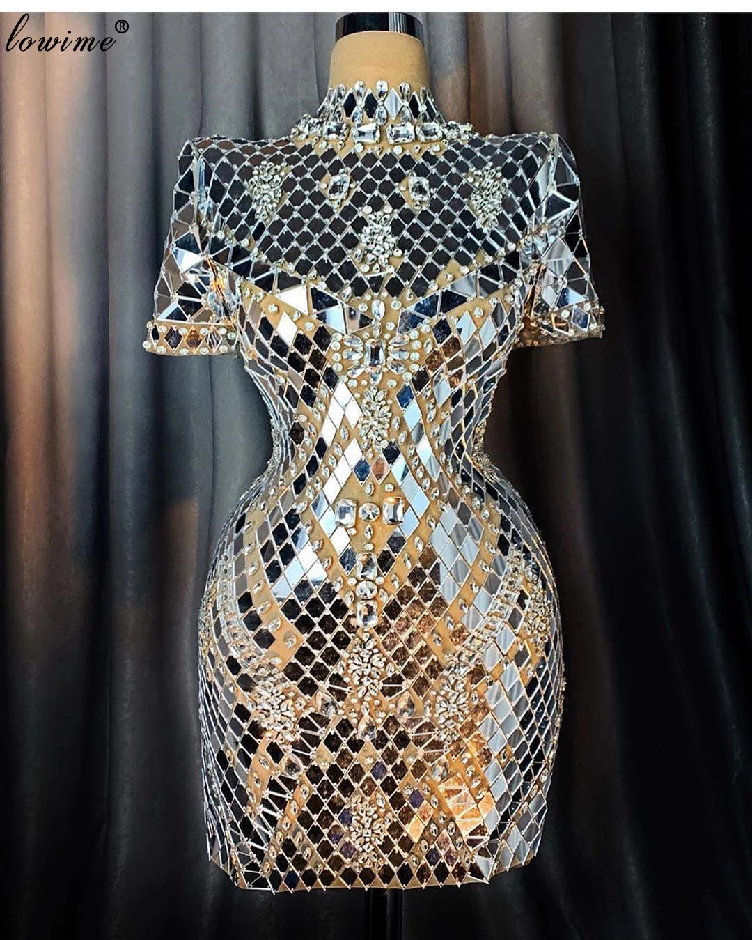 Серебристые блестящие платья для выпускного вечера размера плюс, прозрачные Коктейльные мини-платья, женские вечерние платья, тяжелые Стразы ручной работы