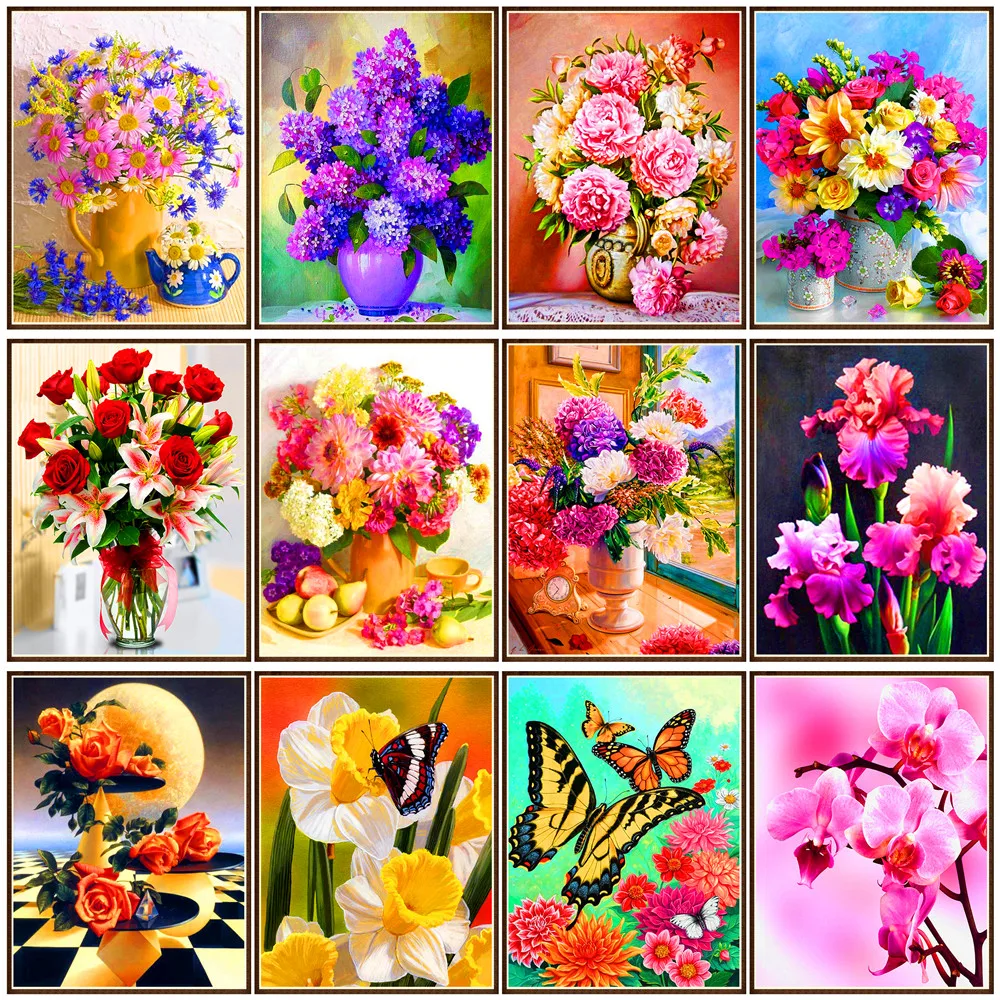 Круглый полный алмаз 5D цветок Алмазная картина Сочетание цветов DIY Алмазная вышивка набор украшение для дома подарок $2,92$4,5