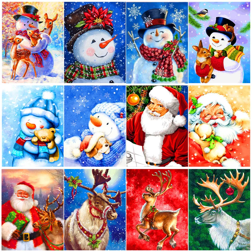 Рождественский подарок, Круглый, Полный Бриллиант, 5D, алмазная картина, Санта-Клаус, снеговик, олень, сделай сам, алмазная вышивка, набор $5,20$8