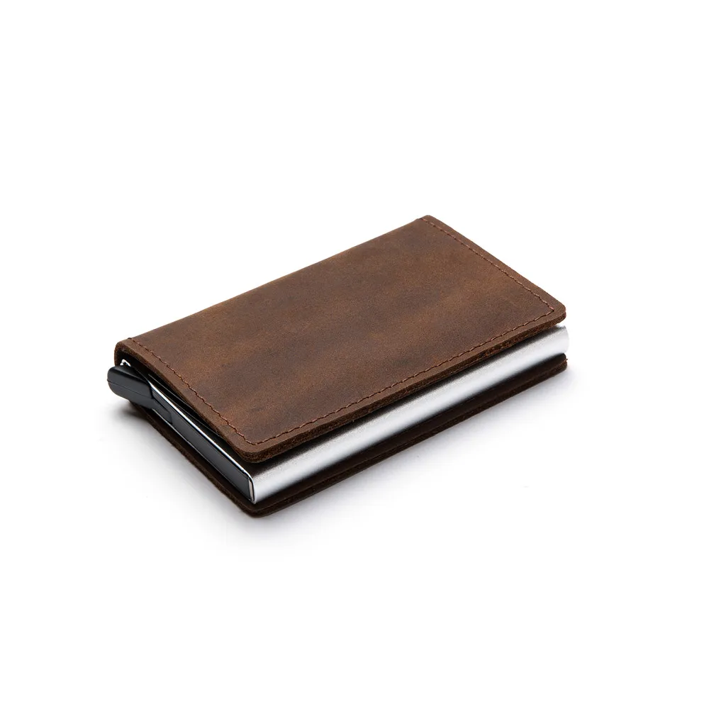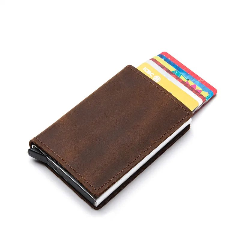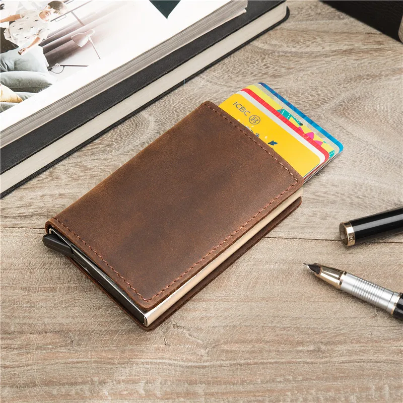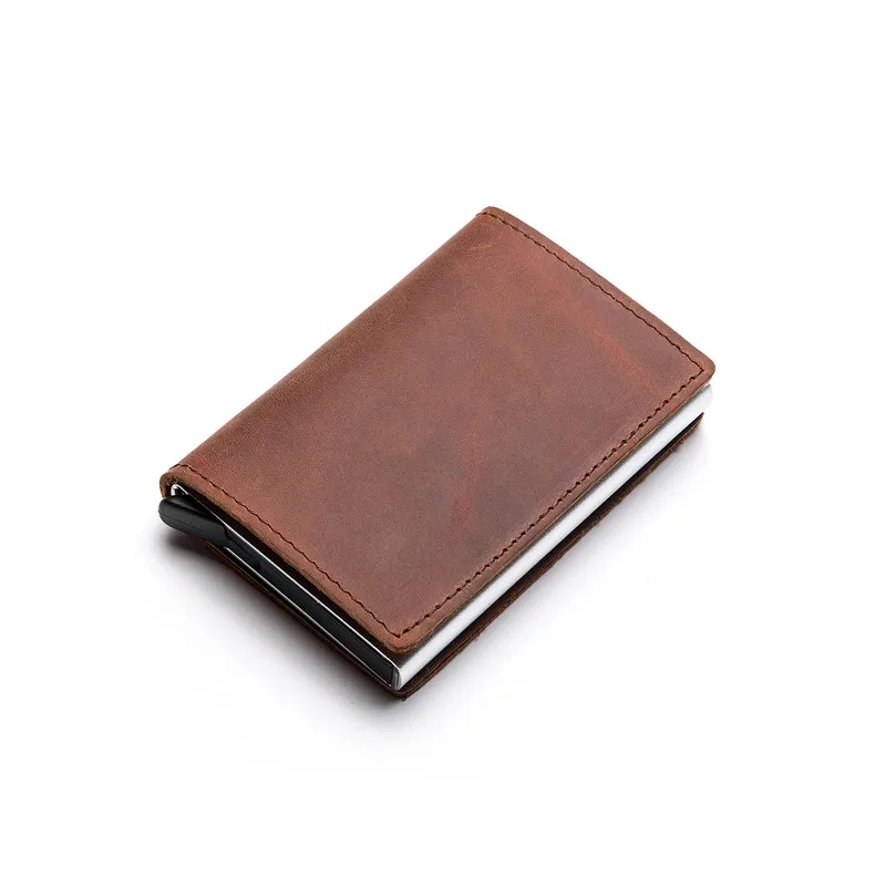 Чехол-клатч ZOVYVOL, из натуральной кожи, с отделением для карт и RFID-защитой, выдвижной, тонкий, тонкий, из алюминия, 2021