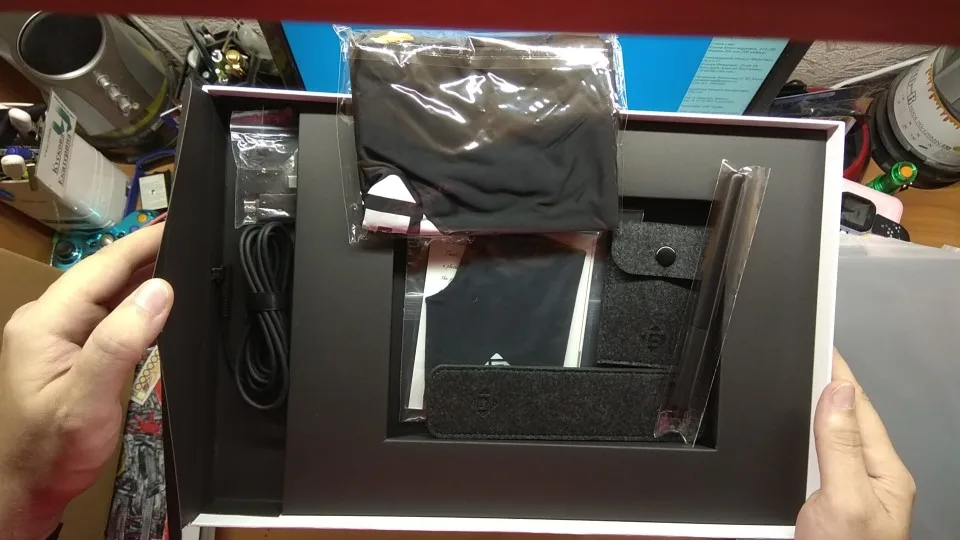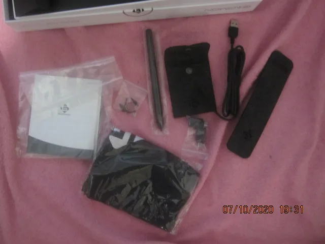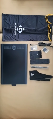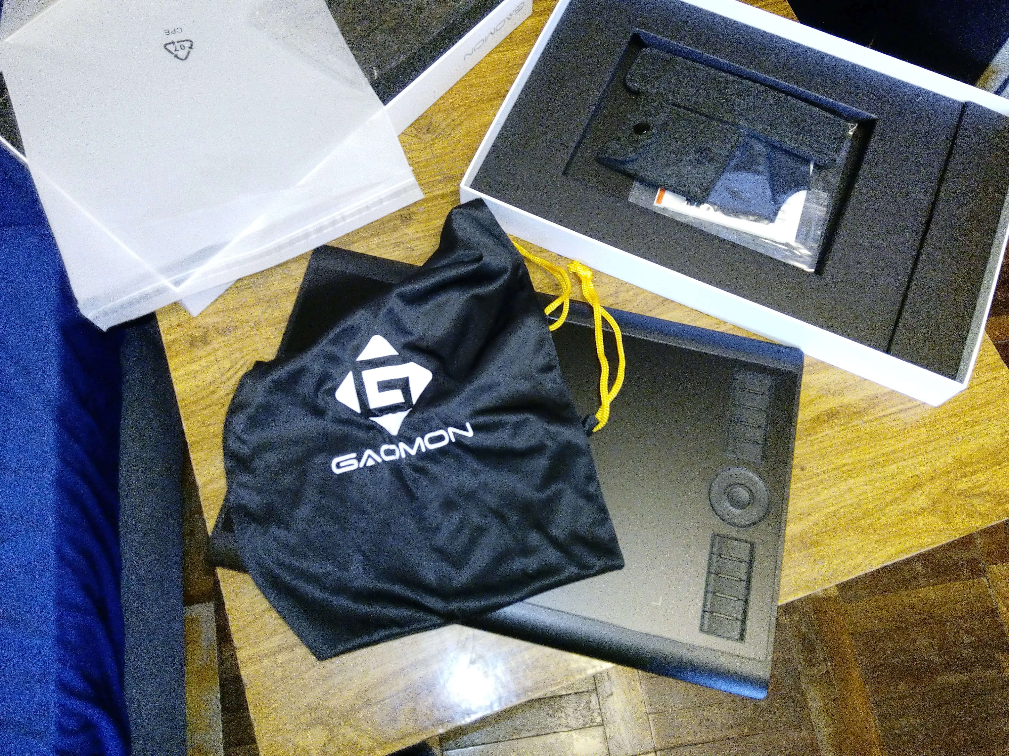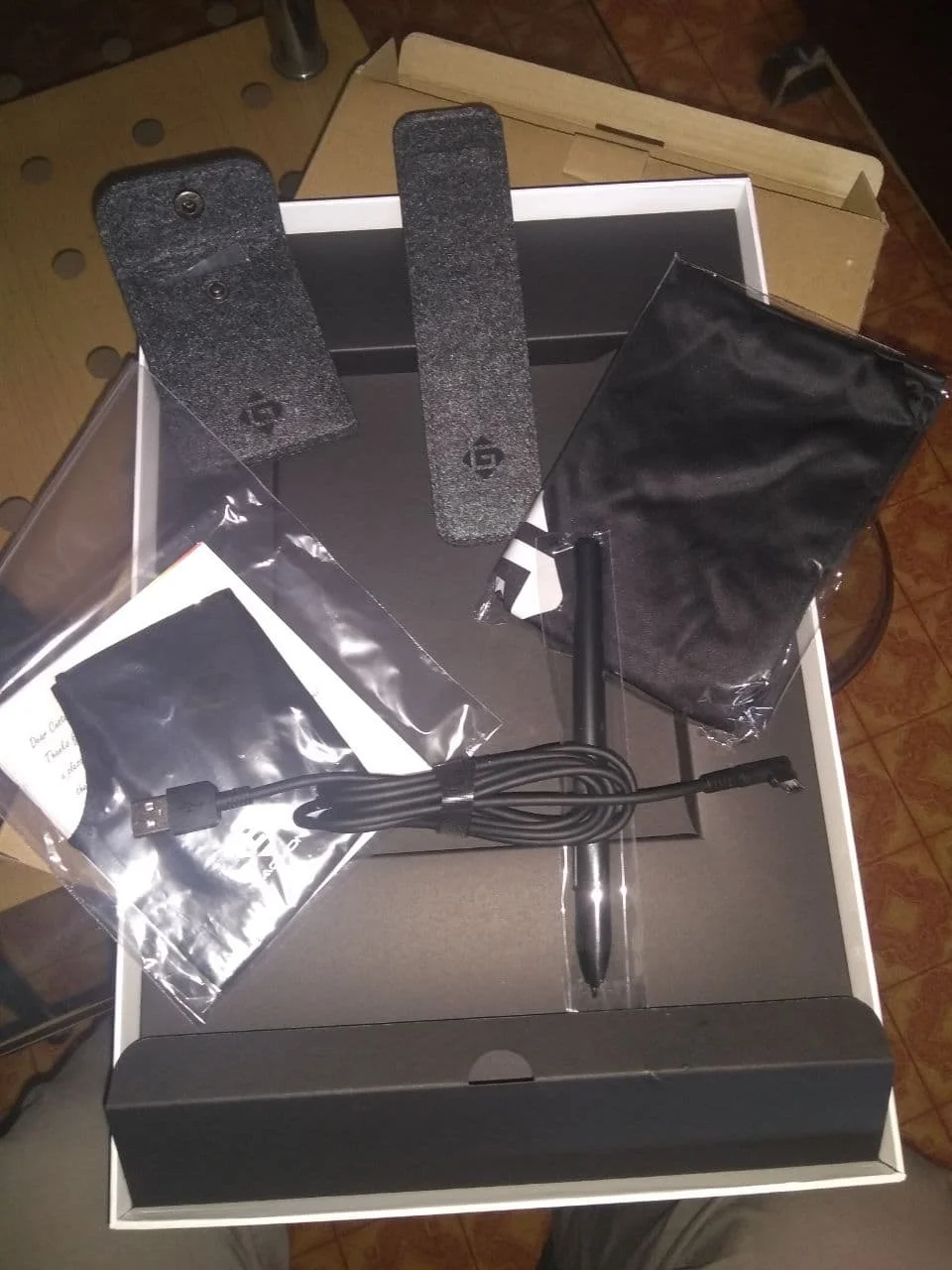 Посылку доставили быстро. Комплектация: планшет,краткое руководство, ручка с запасными перьями, USB переходники с шнуром, перчатка, чехол для планшета. Протестировал планшет в фотошопе. Работает хорошо. Рекомендую.