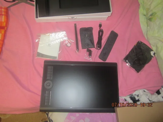 Посылка пришла очень быстро. Заказывала дочери в подарок, ребёнок очень доволен. Для начинающих самое то. Дочь довольно быстро со всем разобралась, рисует с помощью телефона. Покупала со скидкой за 3744. В комплекте идёт планшет большого формата, провод и переходники для телефона и компьютера, перчатка, ручка, не требующая подзарядки, перья и кольцо, с помощью которой можно их менять. Также была информация на каком сайте скачать драйвера.