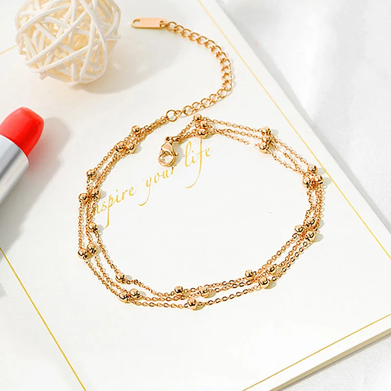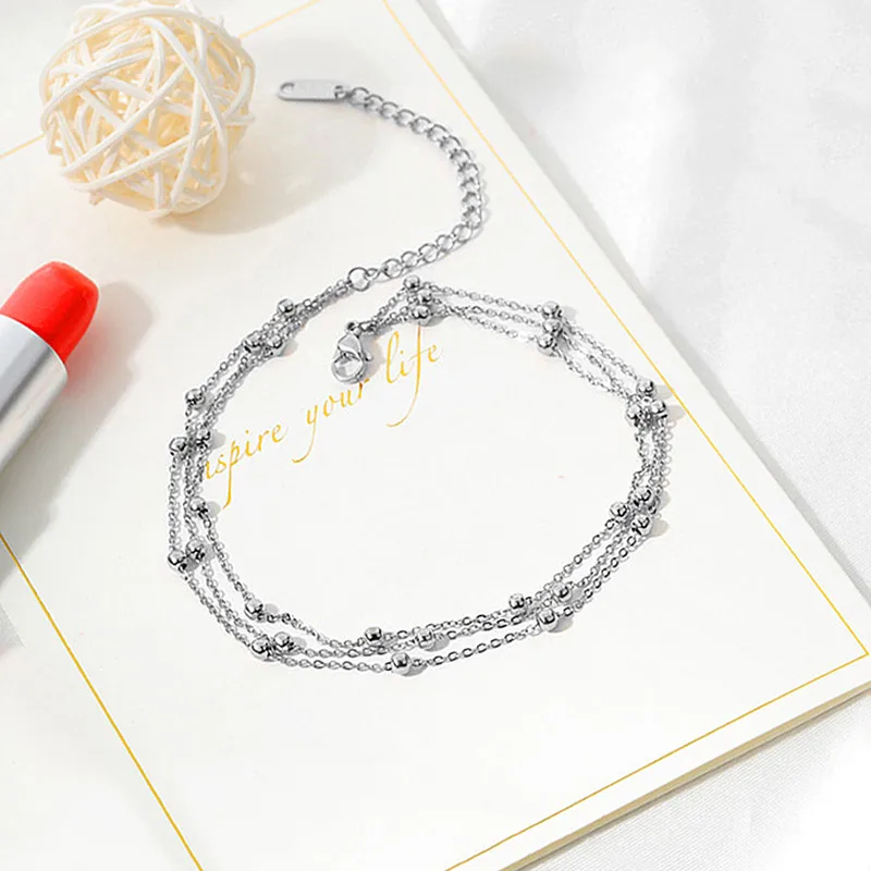 Браслеты-анклеты USTAR в стиле бохо женские, регулируемые Многослойные браслеты-цепочки с бусинами из нержавеющей стали, летние сандалии, ювелирные изделия