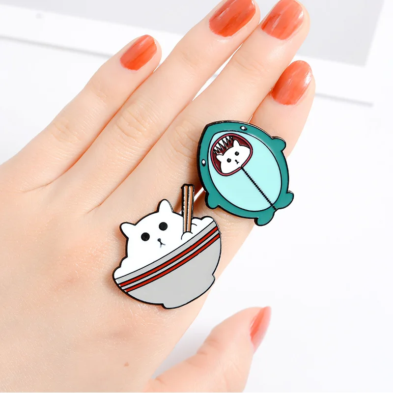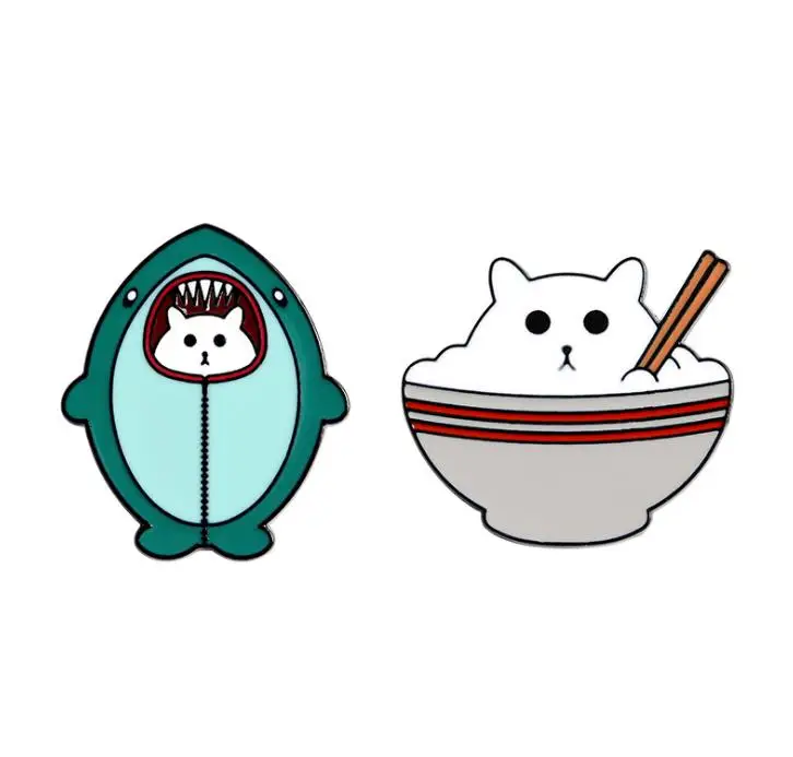 Симпатичная брошь в виде кошки из акулы для студентов, новый модный дизайн, мультяшная эмалированная булавка, Женский мешочек для брошек, Подарочный значок