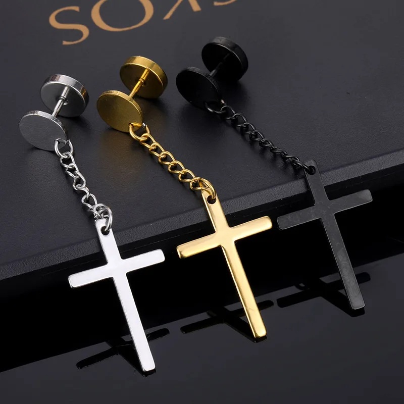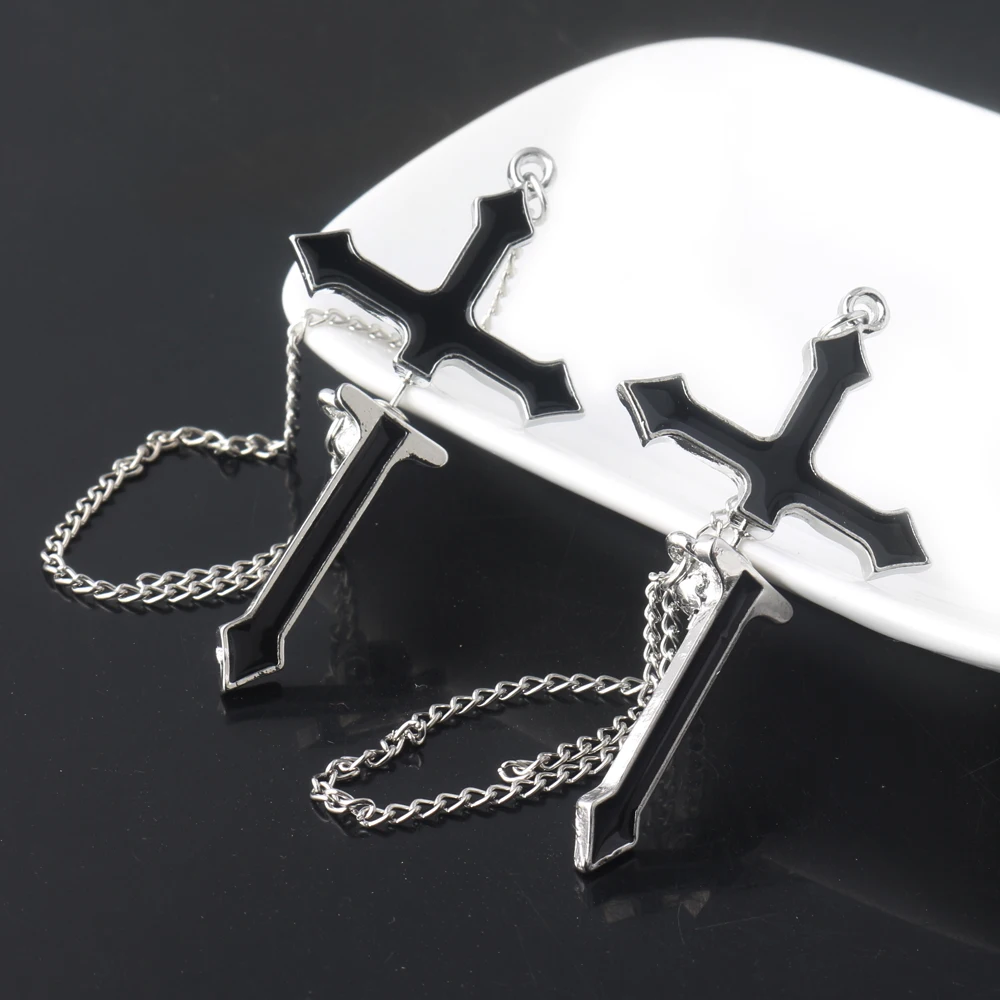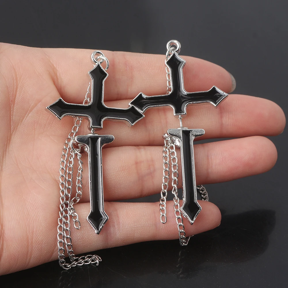 Серьги-подвески женские, черные, в стиле панк, с крестом, на длинной цепочке