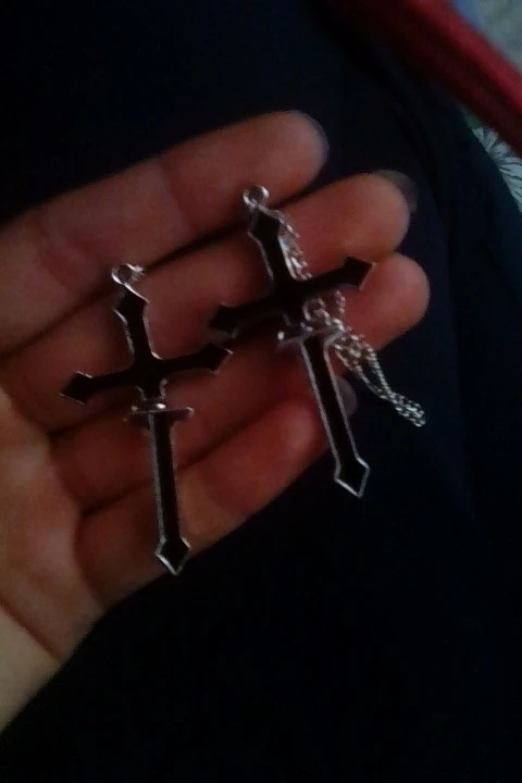 прекрасные сережки крестики, очень православные я считаю. правда, думала по крупнее будут, но чувства разочарования нет, всё таки они прям очень очень классные. в самый раз для того чтоб бабушек в общественном транспорте пугать.
