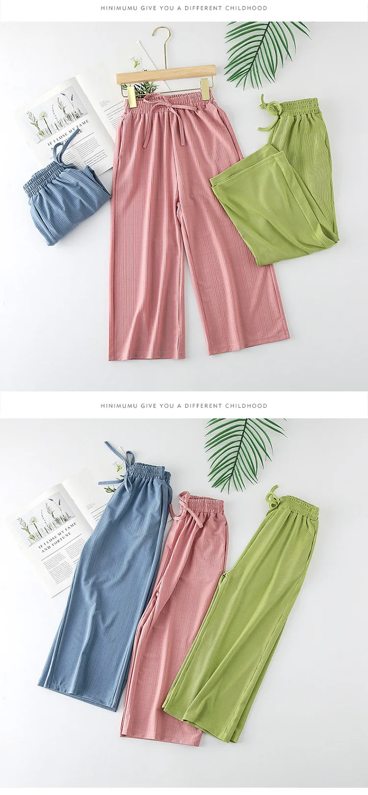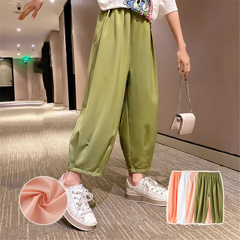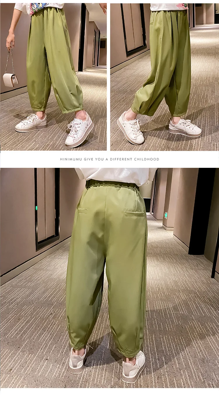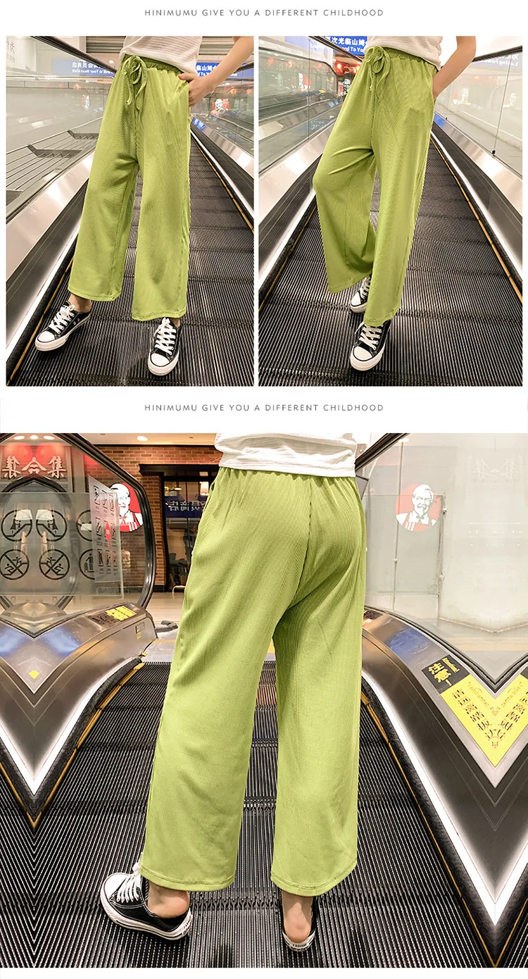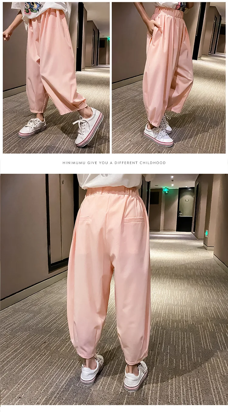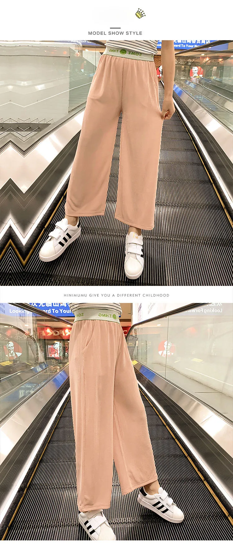 Летние штаны для девочек-подростков коллекция 2022 года, повседневные Модные свободные спортивные штаны детские Широкие штаны школьные детские штаны для детей возрастом 6, 8, 10, 12 лет