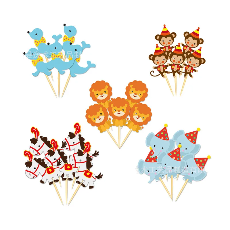 Детский душ, Детские сувениры, карнавал, цирк, украшение, торт, кекс, бумажные обертки, Toppers, с днем рождения, товары для вечеринок