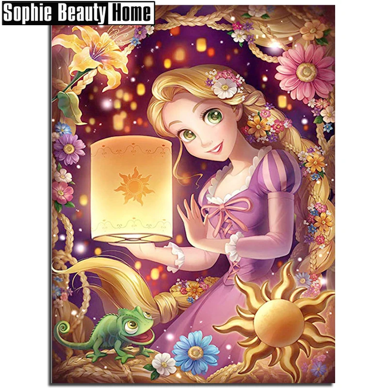 Полноразмернаякруглая Алмазная 5D картина сделай сам с квадратнымикруглыми стразами, мультяшная длинная принцесса, 3D вышивка крестиком, 5D домашний декор 204054