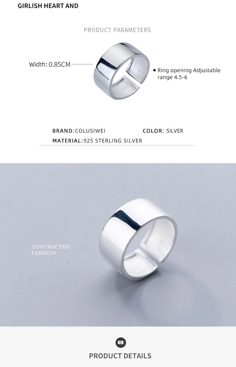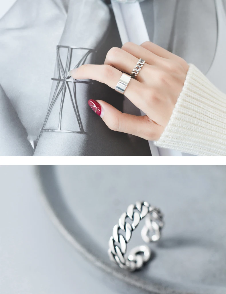 COLUSIWEI 925 пробы серебро Гипербола Глянцевая геометрическим принтом, с принтом в виде замка брелок для ключей для Для женщин Открытые Регулируемые кольца ювелирные украшения