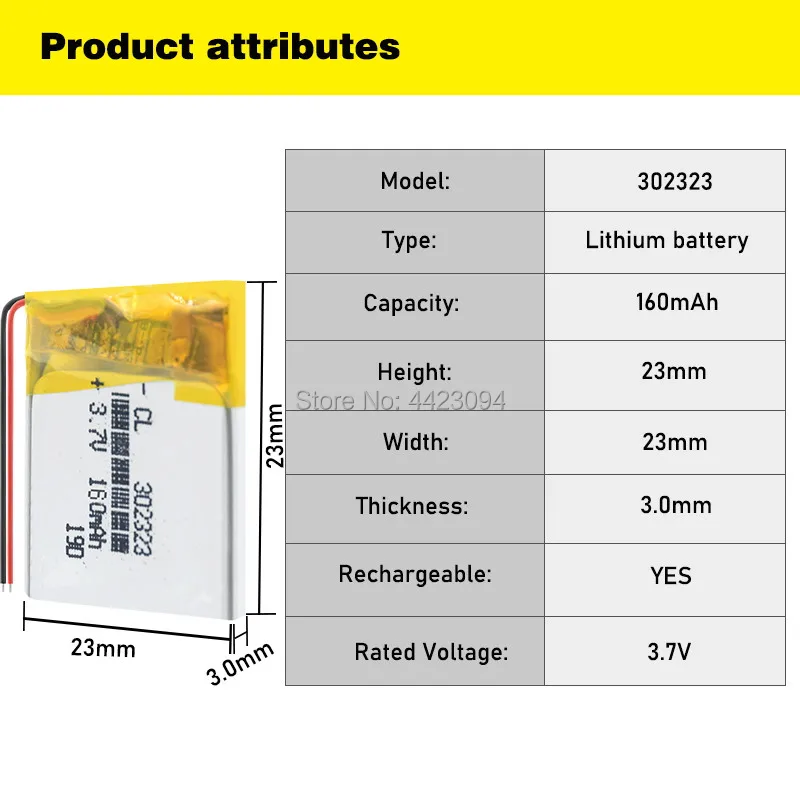 3,7 V литий-ионный полимерный аккумулятор 302323 160mAh для MP3 Blu...