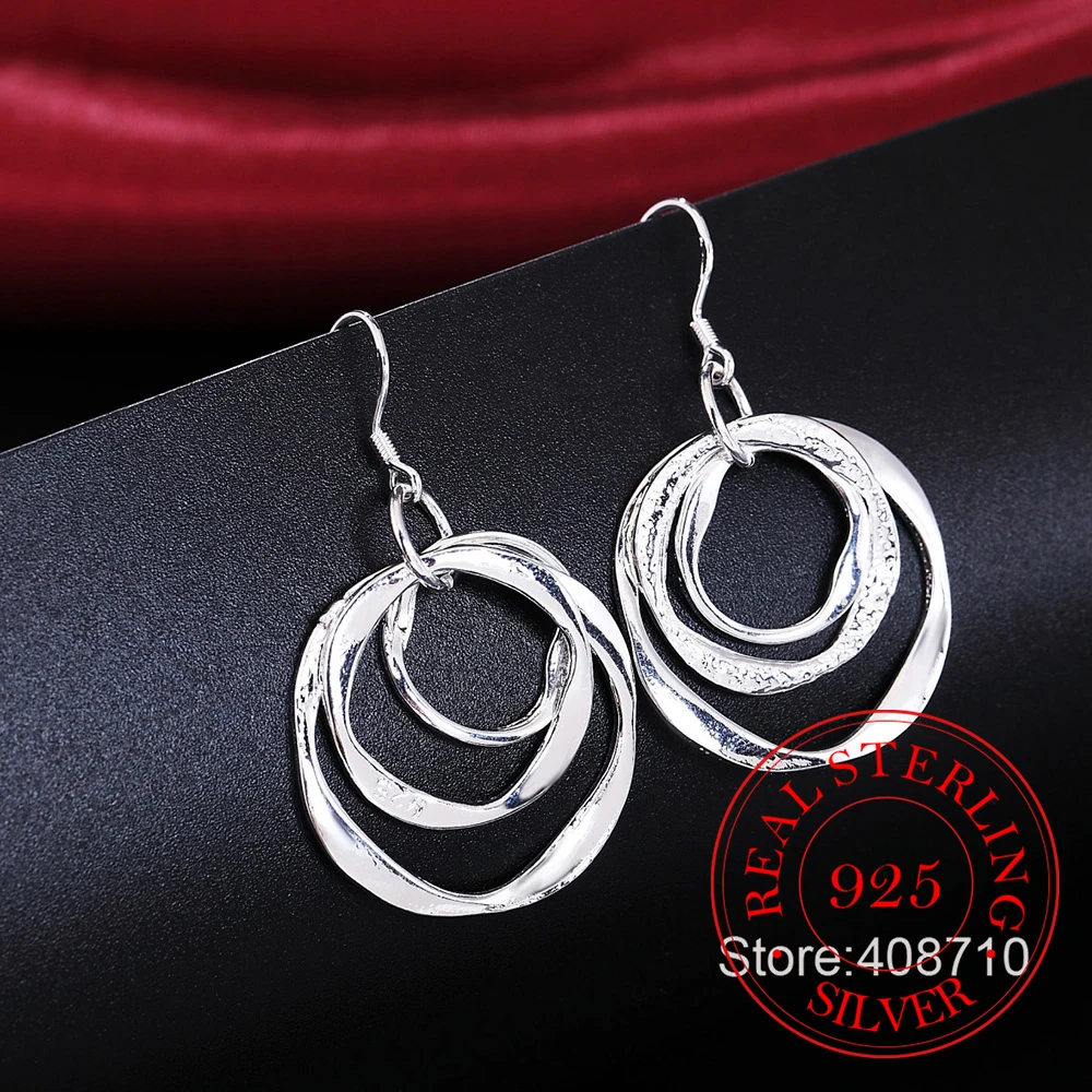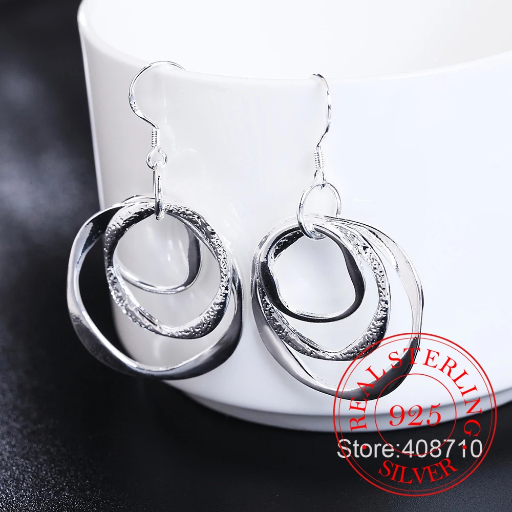 Женские серьги-подвески из серебра 925 пробы, с тремя кольцами
