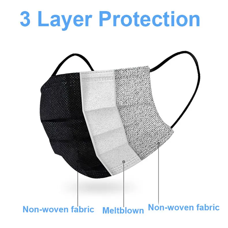 10-200 шт Черный Mascarillas одноразовые Nonwove 3 Слои маска для п...