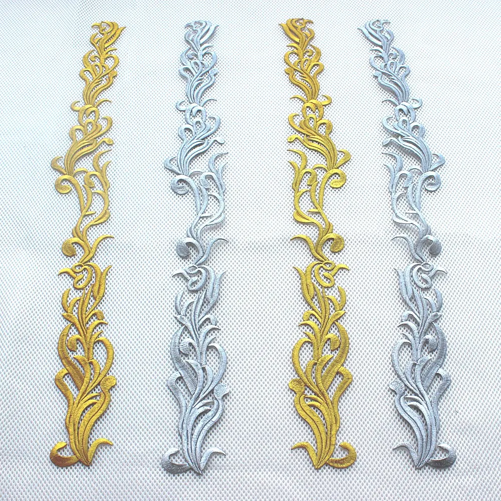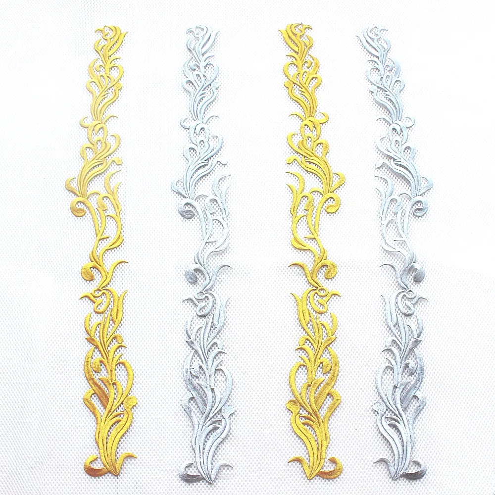 Железная аппликация золотая вышивка цветок Косплей костюмы нашивки на одежду вышивка одежды планки золото и серебро 60 см * 8 см