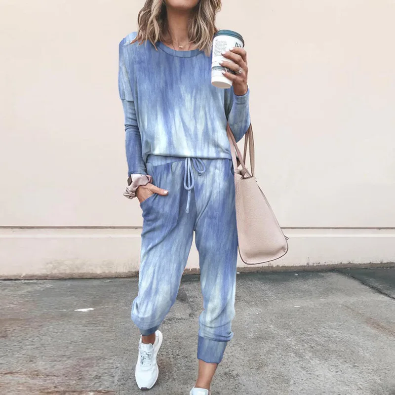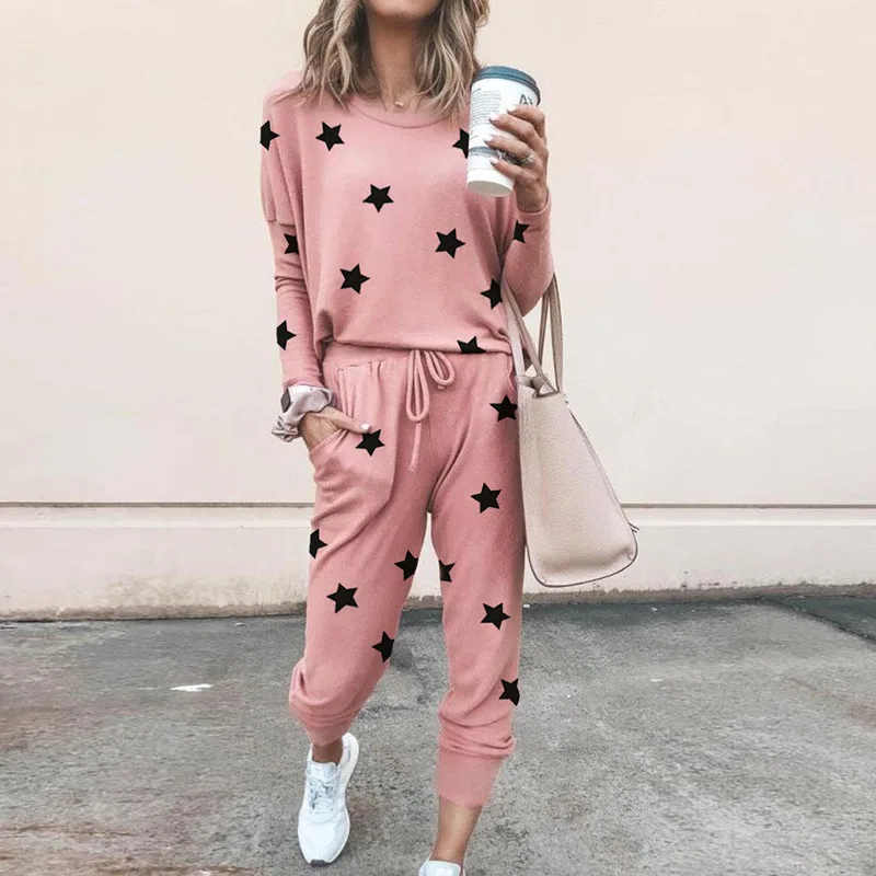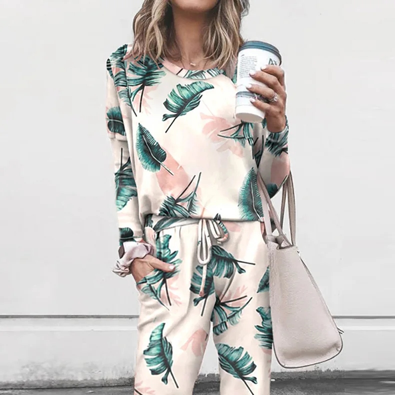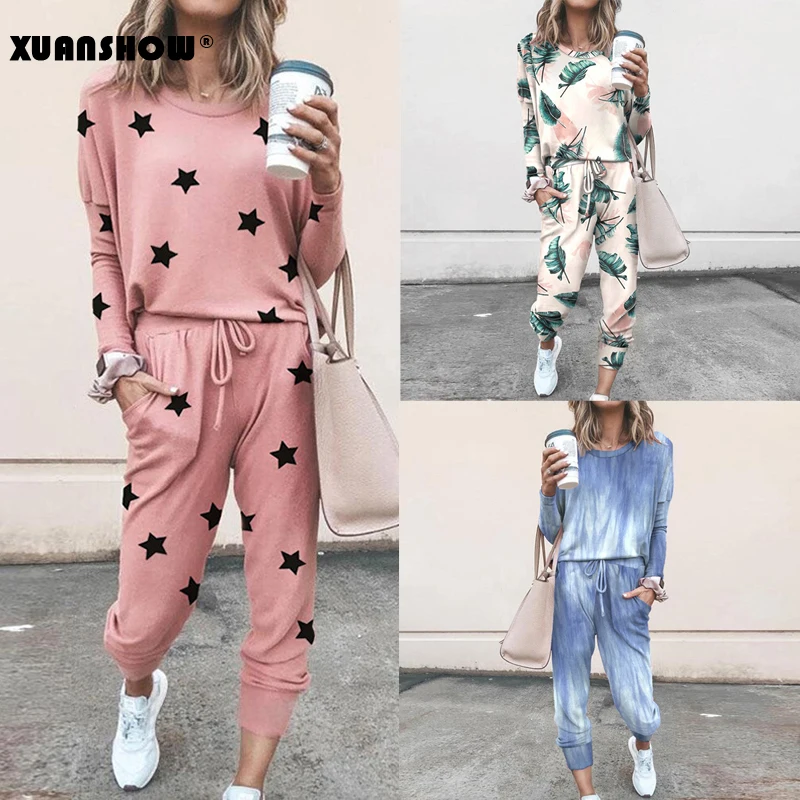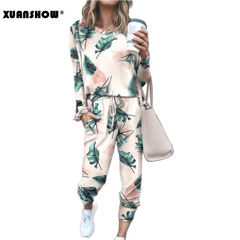 Женский спортивный костюм XUANSHOW, повседневный костюм из двух предметов с цветочным принтом, топ и длинные брюки, весна-осень 2020