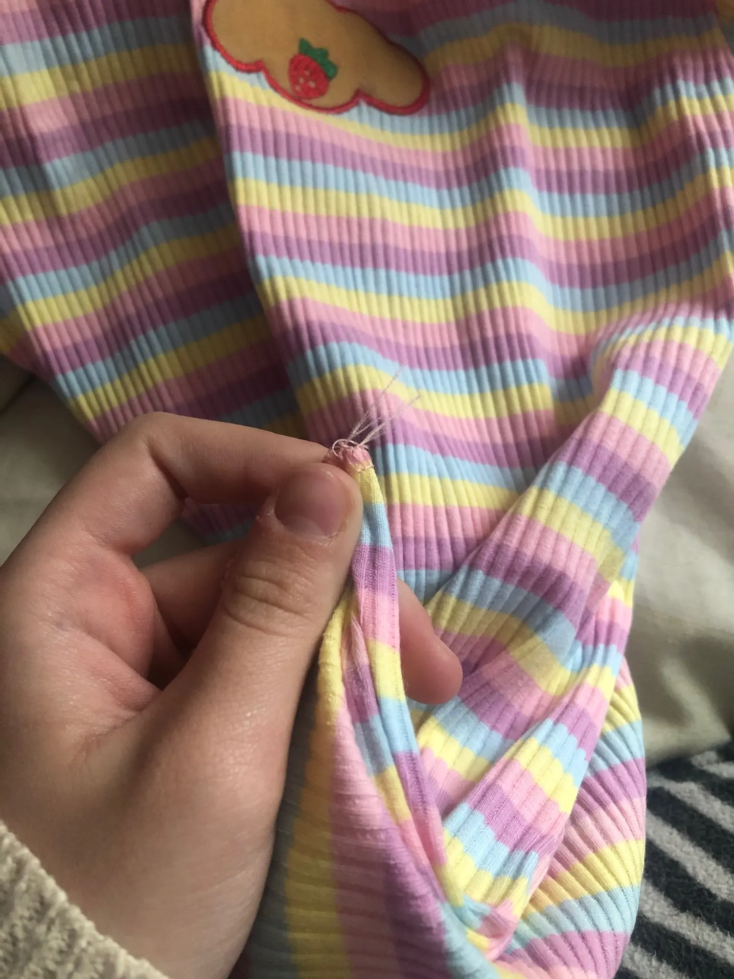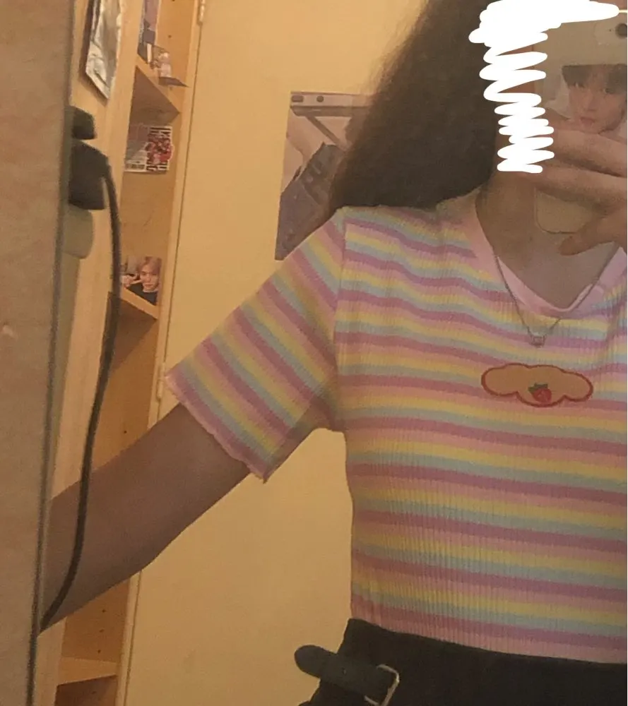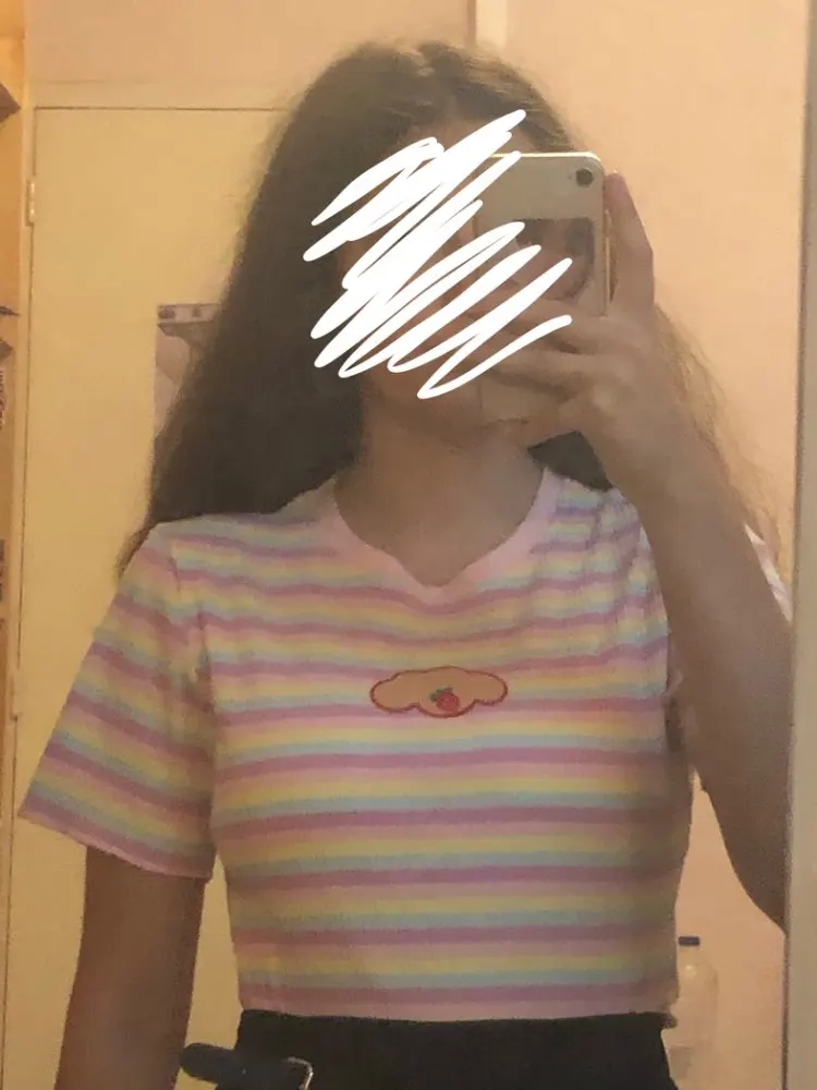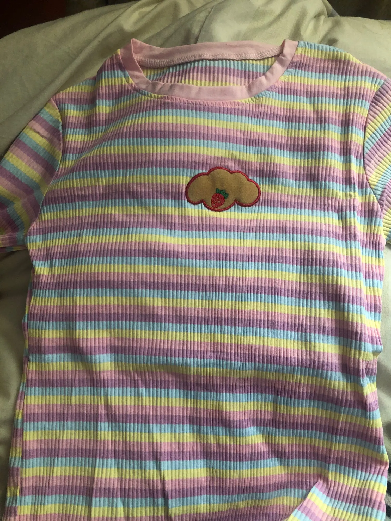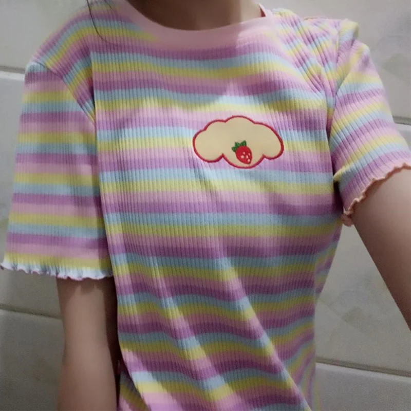 Женская футболка NYOOLO, с вышивкой клубники, в радужную полоску, с коротким рукавом, лето 2020