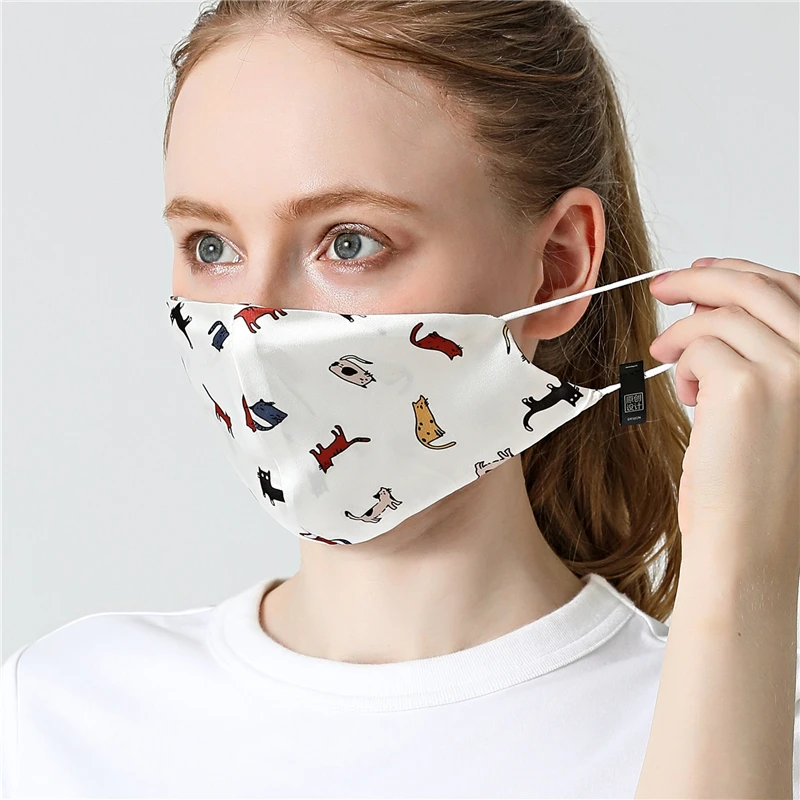 Маска для лица многоразовая, шелковая, с принтом, для защиты от пыли, 2021