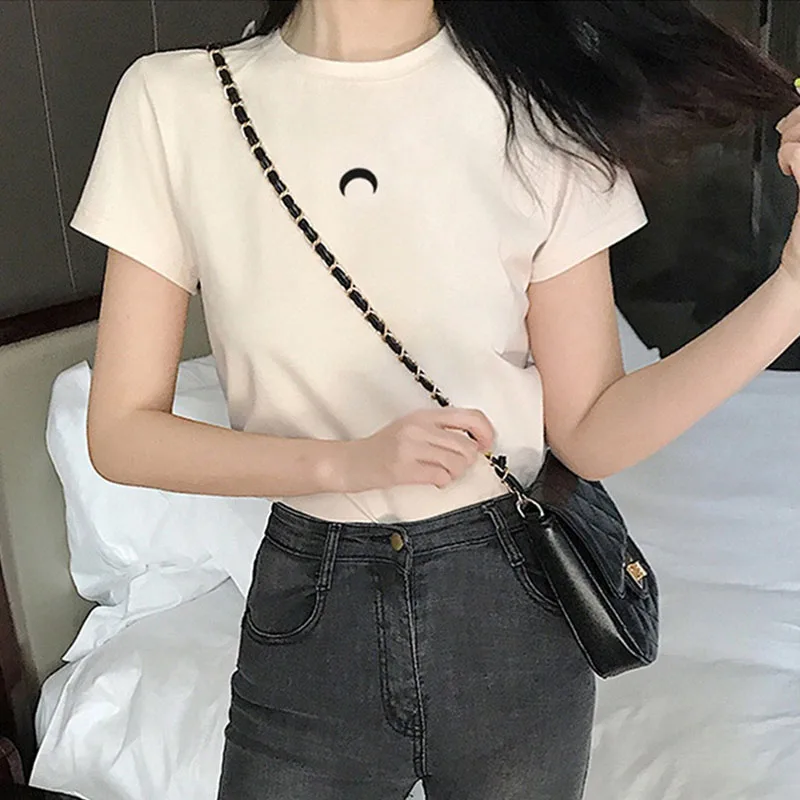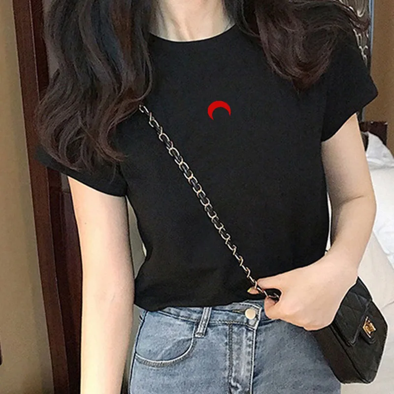 Летняя шикарная футболка в корейском простом дизайне, рубашка с принтом Луны и дьявола, женская футболка, свободная уличная одежда, топы в готическом стиле с коротким рукавом