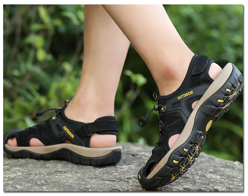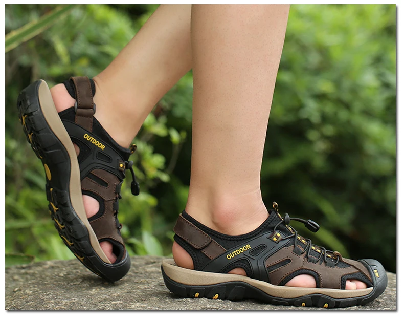 Пляжные сандалии из натуральной кожи, мягкие мужские дышащие летние...