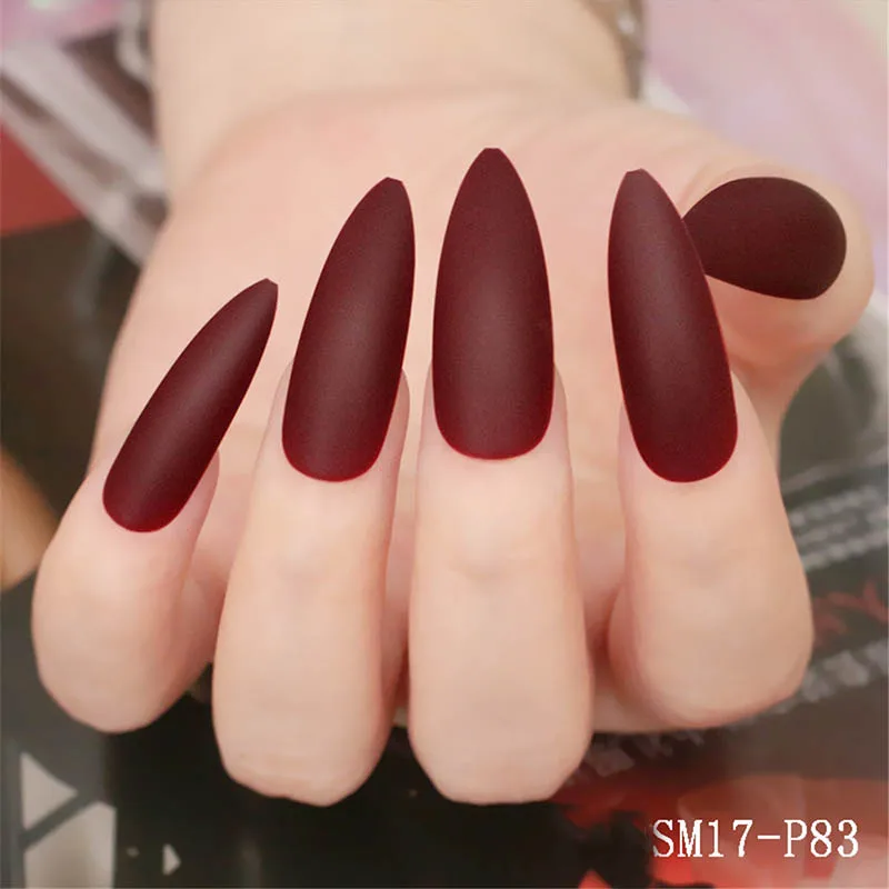 Удлиненные острые ногти-стилеты накладных ногтей, Бордово-красный, ...
