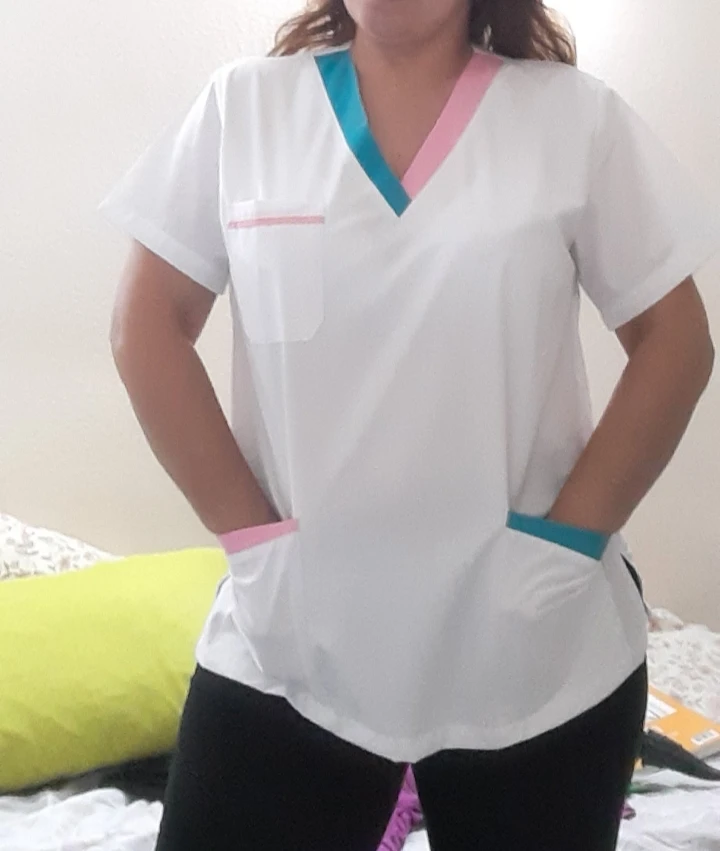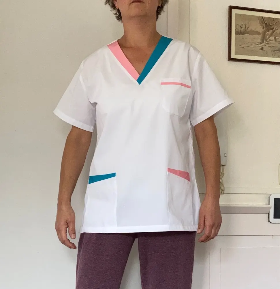 Tejido malisima. La tela es plástico muy tieso. Nada cómodo para trabajar. El diseño es bonito pero no te apetece ponértelo porque vas como un robot.