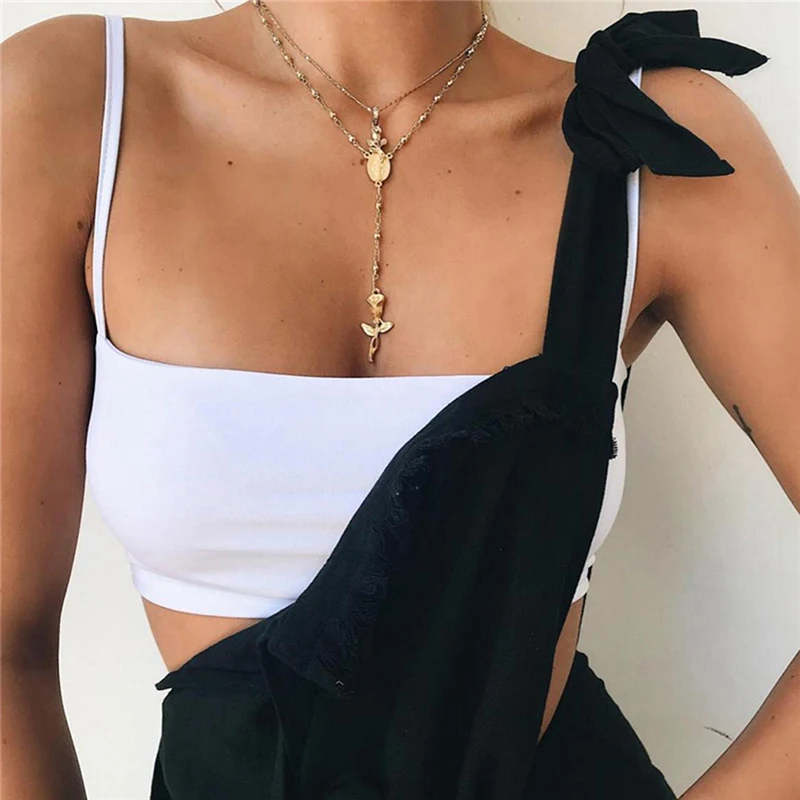 Модные женские Клубные майки, однотонные майки без рукавов на брете...