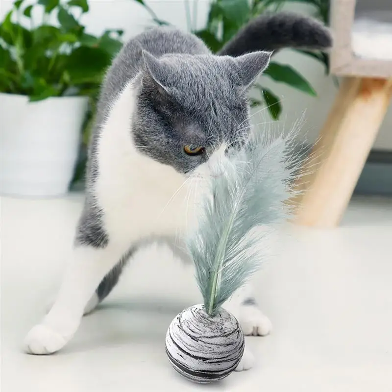 Legendog 1 шт., кошачья интерактивная игрушка Искусственное перо, декор для домашних животных, мяч для кошек, игрушка-тизер для кошек, товары для домашних животных, сувениры для кошек