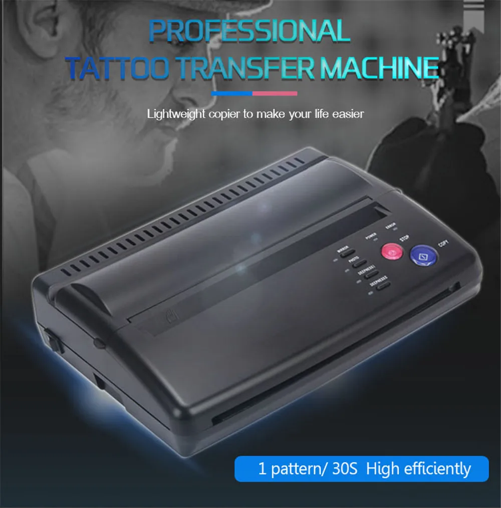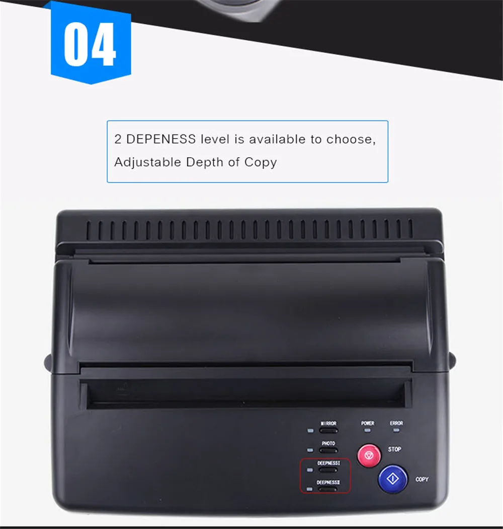 Описание:100% новый и высокое качествоТепловой копир позволяет татуировщику сделать копию дизайна, который затем может быть перенесен на кожу человека, получающего татуировку, убедитесь, что татуировщик получит именно то, что он или она хочетОбновленная версия тату-принтера, оптимизация качества для лучшей передачи татуировокСкопированные документы по типам глубины 1 и глубины 2 для тонкой линии и тяжелой линииСупер отлично подходит для переводной бумаги и специально для тату-художника