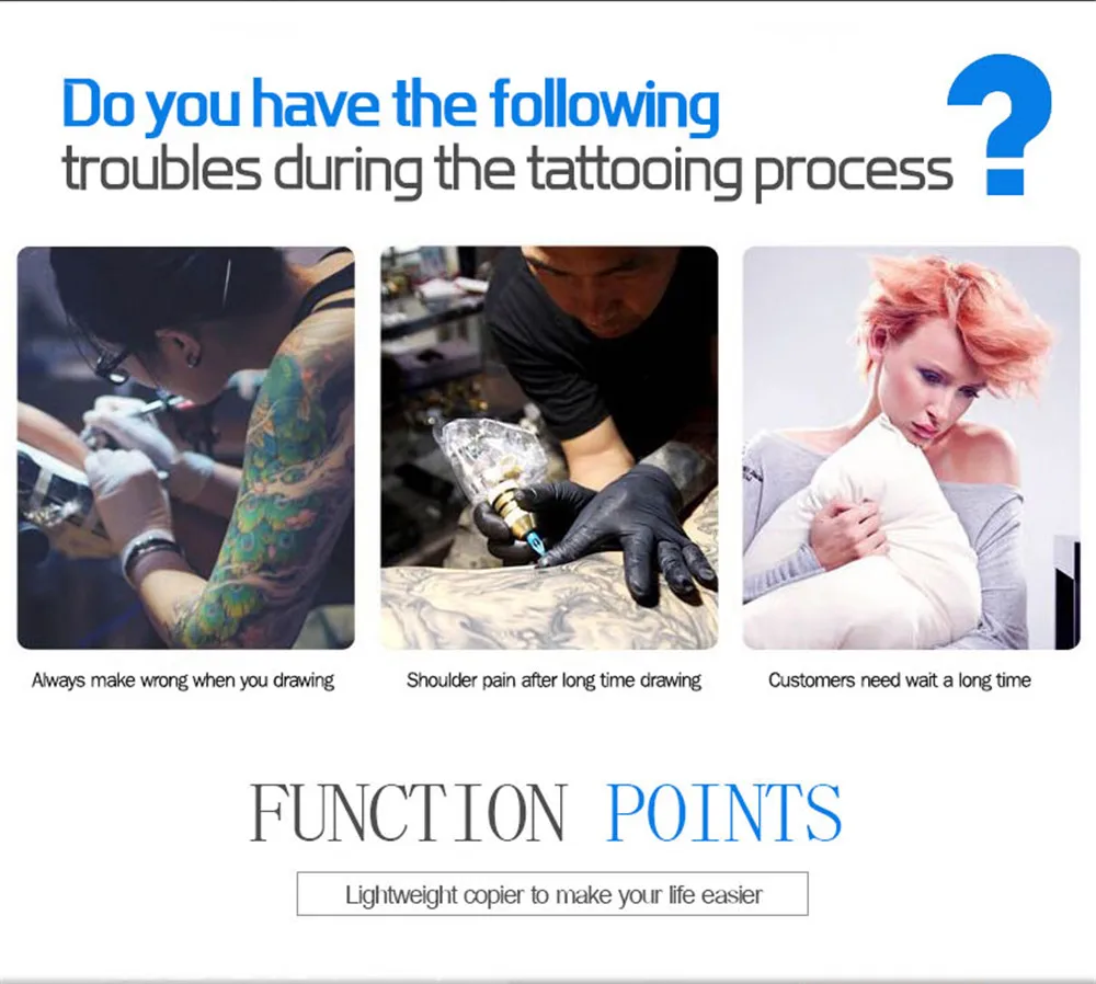 1. Скопируйте дизайн на Переводные бумаги легко и быстро.2. Этот татуировочный принтер имеет быструю скорость печати, низкое тепло, низкий уровень шума и производительность.3. Посылка включает в себя 1 термокопировальный аппарат для тату, 1 кабель питания и инструкцию.4. Для лучшего эффекта передачи, машина должна отдыхать в течение нескольких минут после 1-2 листов передачи.5. Может использоваться только для передачи линейного графика, не может использоваться с узорами с большим количеством затеняющих частей.6. Хороший дизайн материала-Татуировка термальный копир принтер машина изготовлена из высококачественного АБС-материала, который является безопасным и прочным для длительного использования. Обеспечивает быструю скорость передачи, немного шумит. Более важно, что это не будет перегреваться легко.