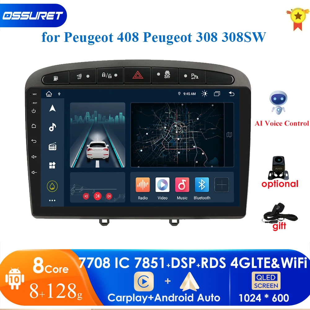 Автомобильный радиоприемник 8G + 128G Android 10 GPS RDS DSP мультимедийный плеер для Peugeot 408 для Peugeot 308 308SW 2din android Автомобильный плеер без DVD