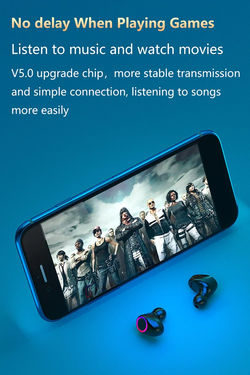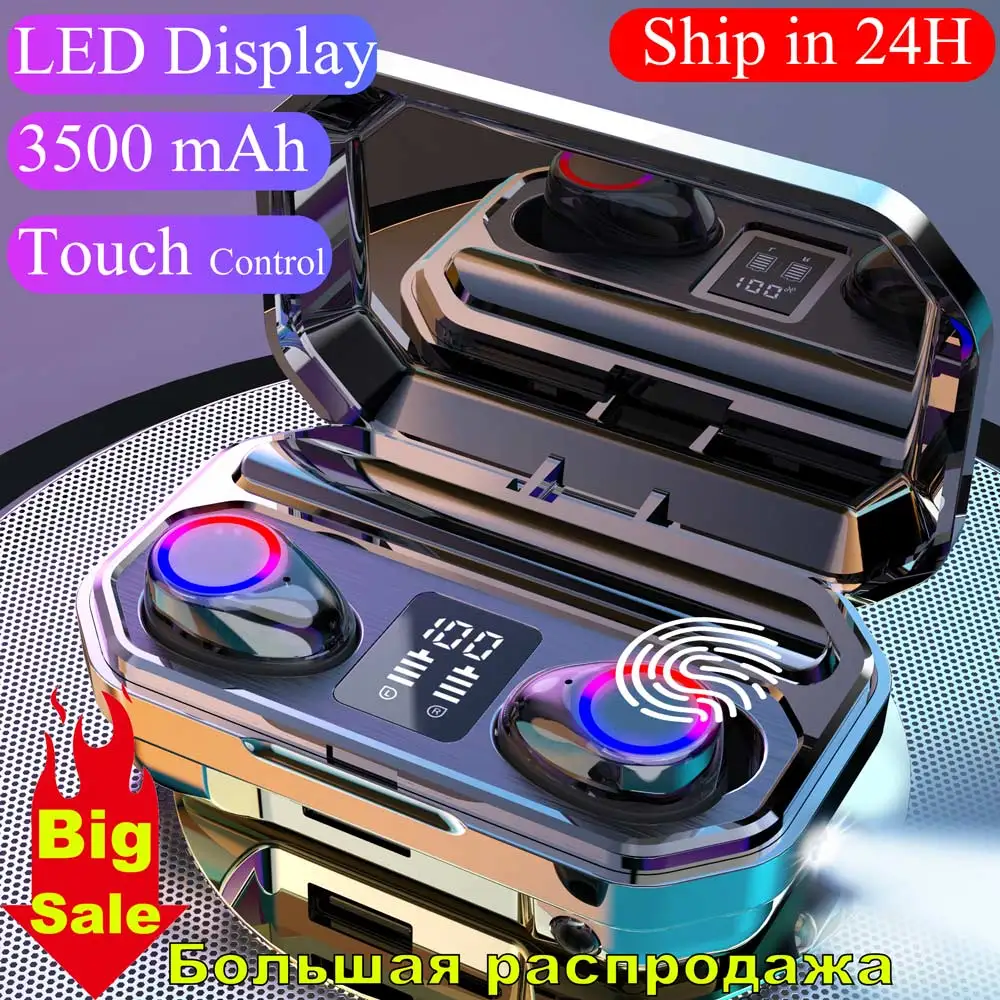 Беспроводные наушники 3500mAh Зарядное устройство со светодиодным дисплеем Bluetooth-наушники с микрофоном Спортивные водонепроницаемые наушники Наушники