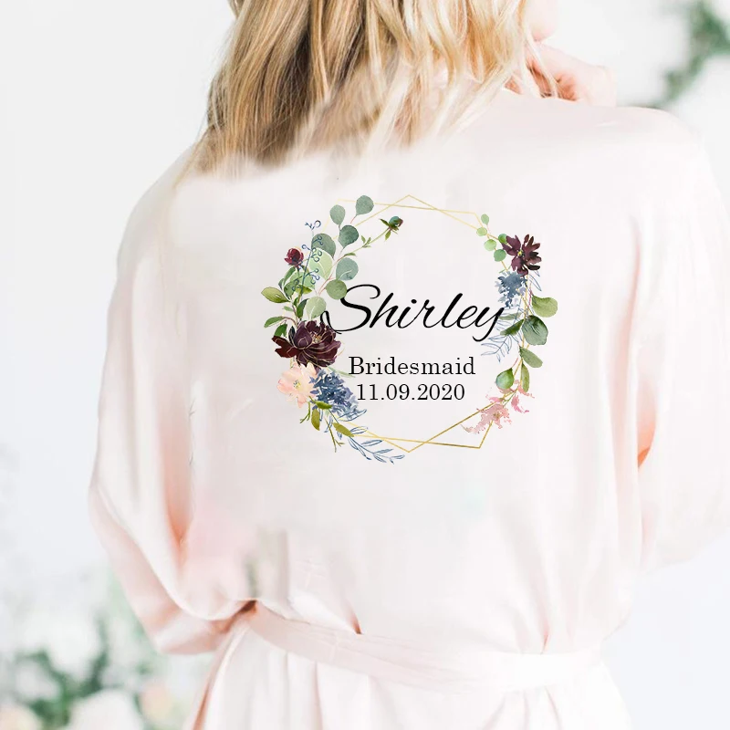 Индивидуальное название на заказ, цветочный принт, Свадебный Атласный халат для невесты, командные халаты, Свадебная вечеринка, искусственная Роба, подарок