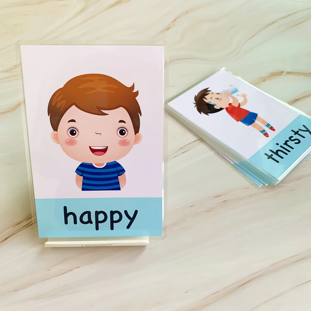 Обучающая карточка для детей по методике Монтессори, с английскими эмоциями, флеш-карточки для детей, забавная игра для упражнений с памятью