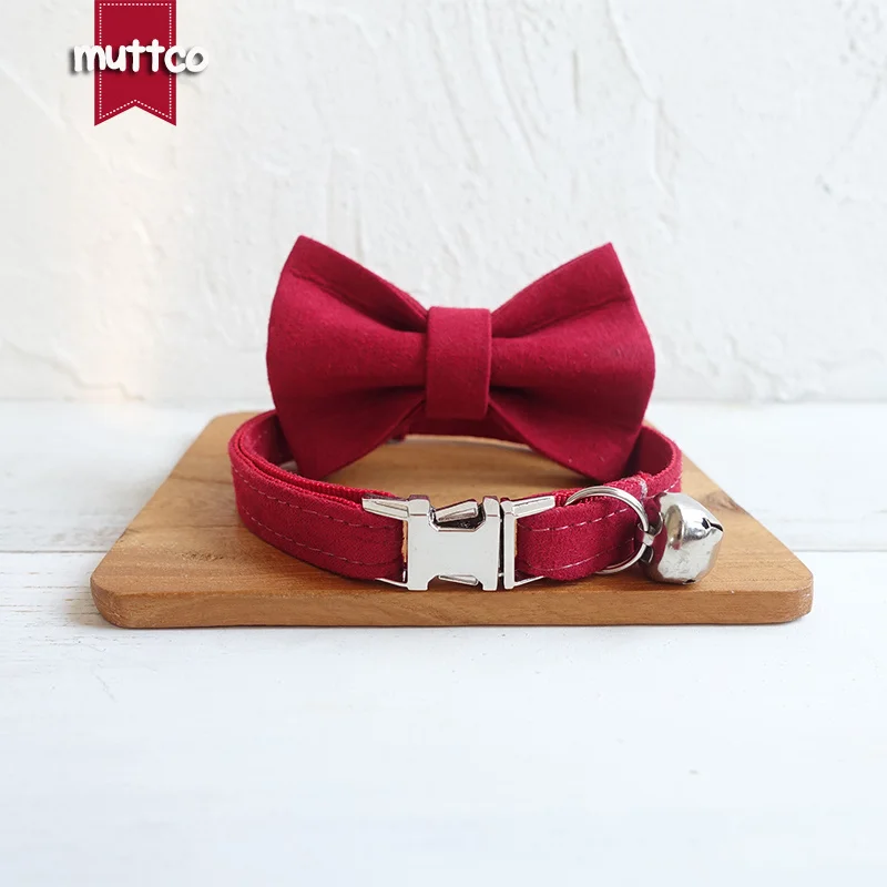 MUTTCO розничная продажа, специальный дизайн, ручная работа, гравировка, металлическая пряжка, ошейник для кошки, вишня, холст, ошейник для кошки, 2 размера UCC020