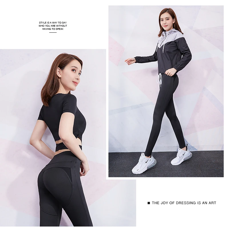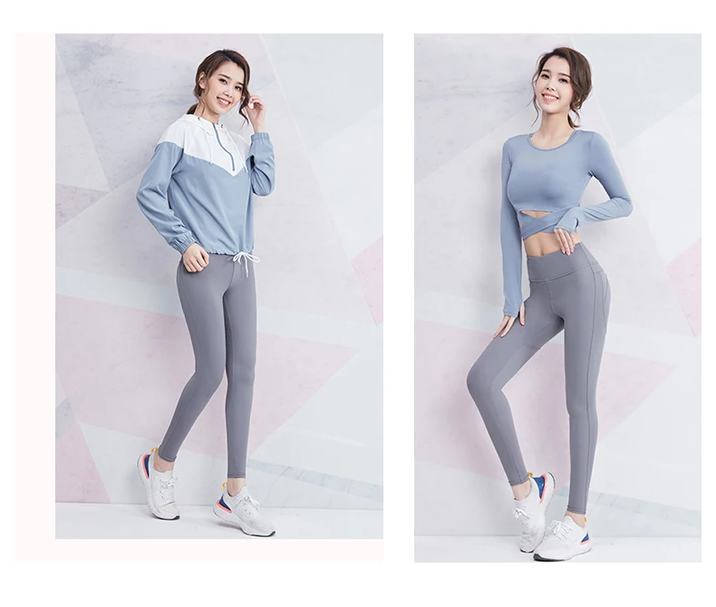 Женские сексуальные костюмы для йоги, укороченный топ, Леггинсы пуш-ап, комплект одежды для тренажерного зала, спортивные толстовки с капюшоном для занятий спортом на открытом воздухе, 2020