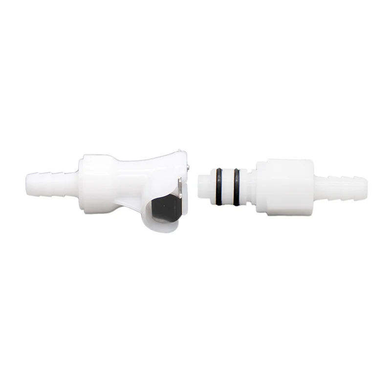 Этот пластиковый быстроразъемный набор оснащен 1/4 "зубцом, который может использоваться с трубкой ID 3/16" до 5/16 ".