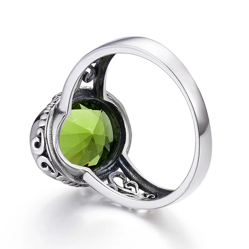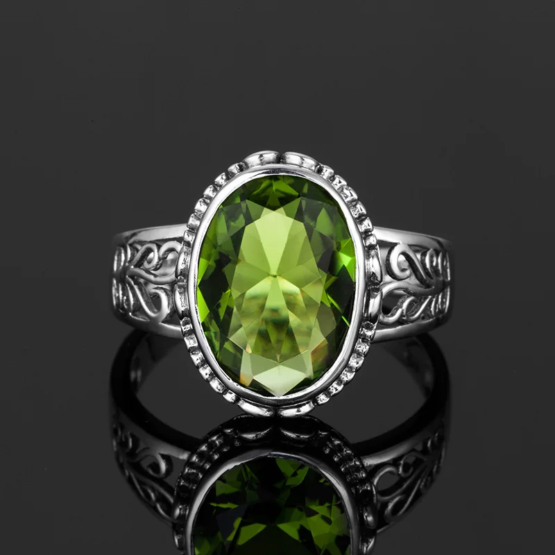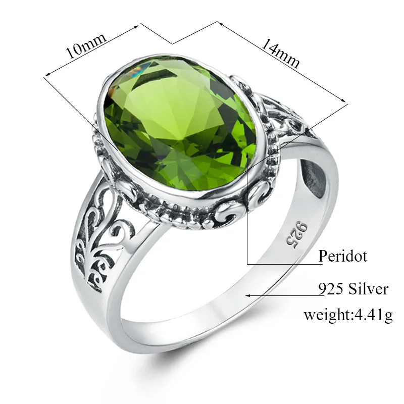 Бренд: Rosewood StoryТип камня: перидотРазмер веса основного камня: 10*14 ммЧеткость камня: VVSЦвет камня: ПрозрачныйФорма камня: овалТип металла: цельный 925 пробы сереброЦвет: античное сереброВес изделия: 4,41 гРазмер кольца: США #5,#6, #7,#8,#9,#10