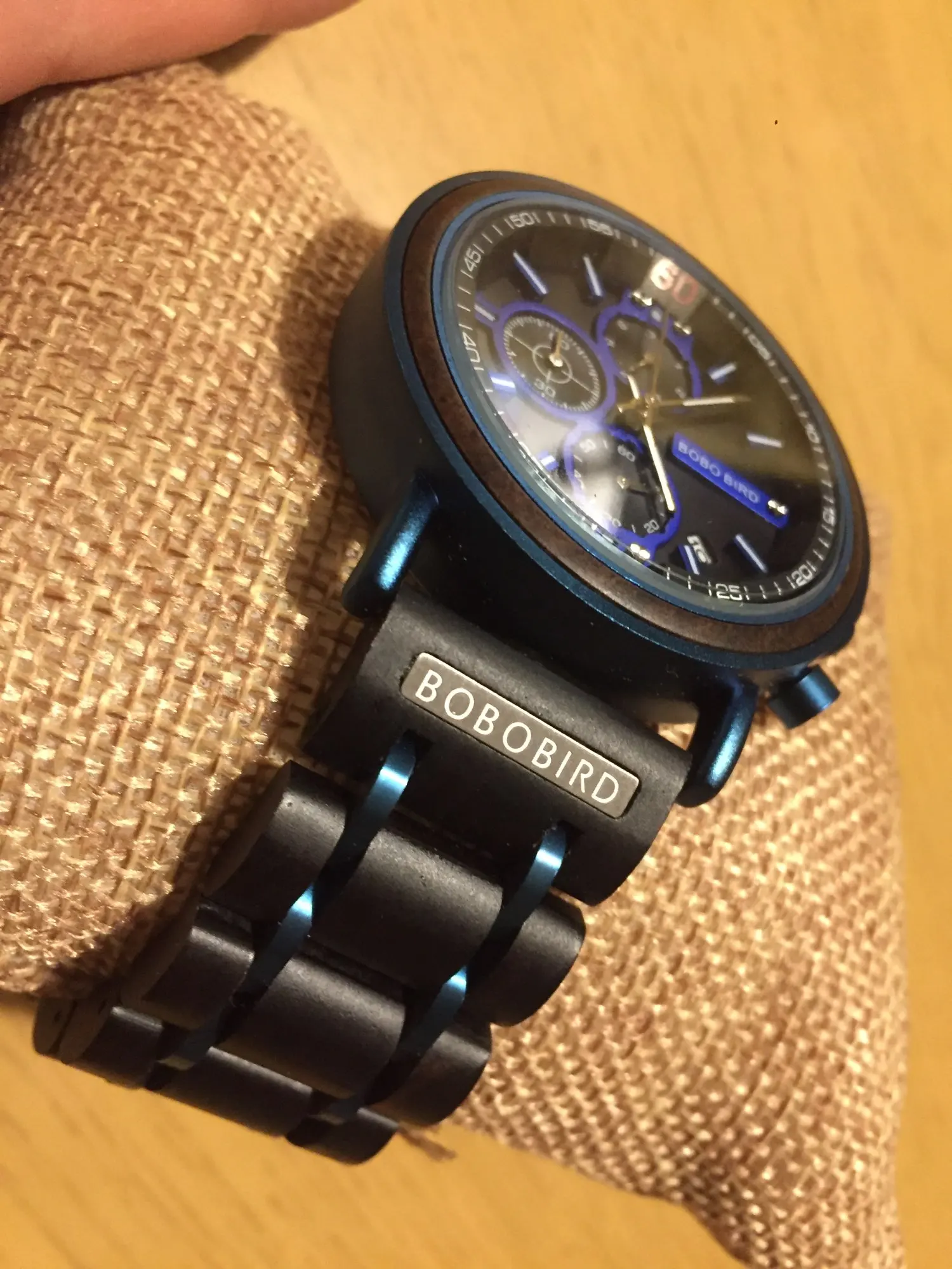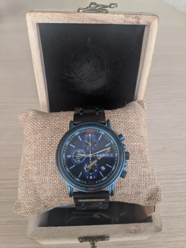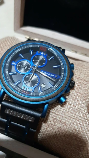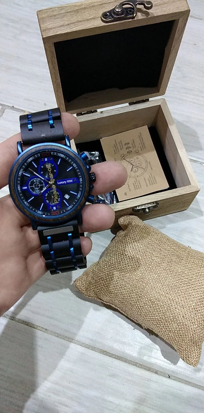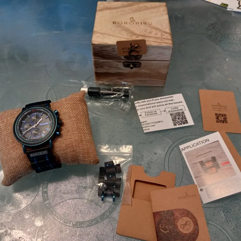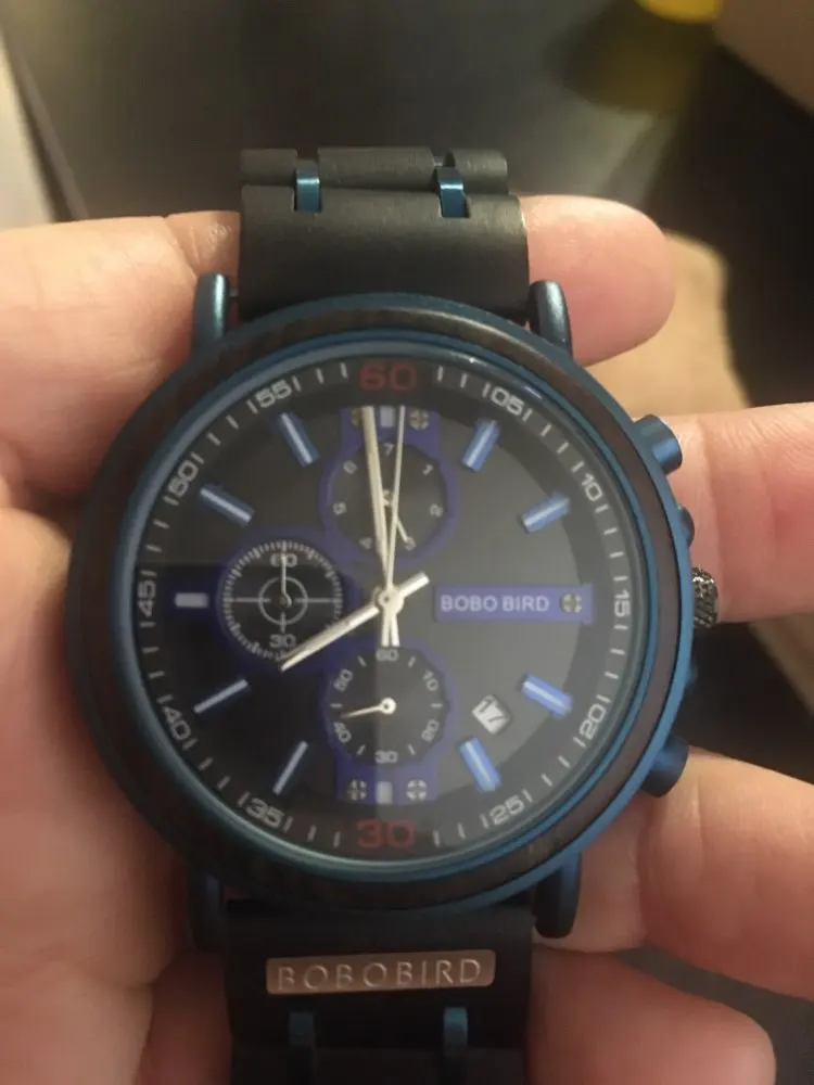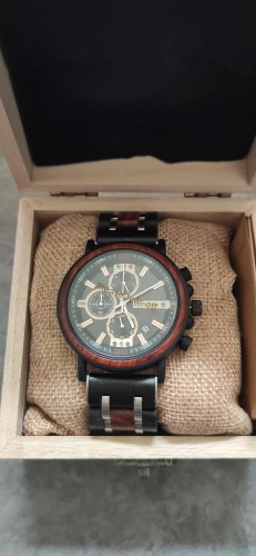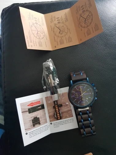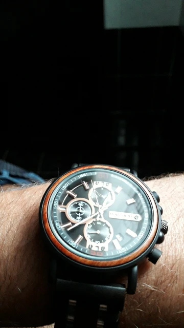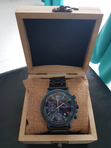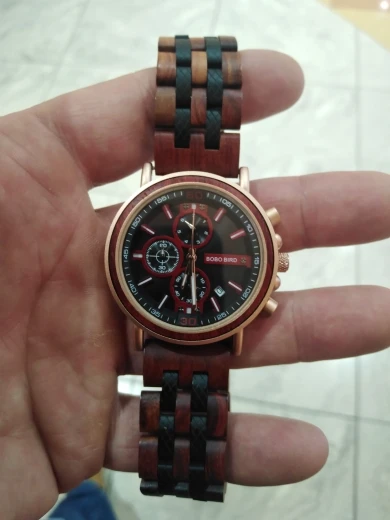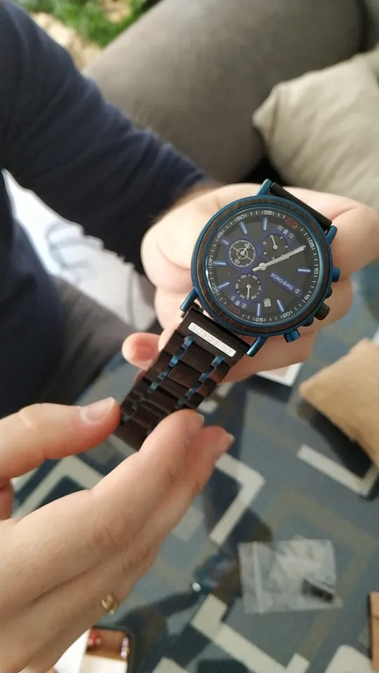 2-е часы от Bobobird. Красивые часы. Не так просто удалить звенья, потому что у меня есть маленькое запястье. Даже с помощью инструмента. Но я сумел и мог это сделать. Деревянный браслет хороший, хронограф работает хорошо. В целом часы кажутся мне легкими, так как я привык носить механические часы. Доставка была около 2 недель. 5 звезд, я рекомендую продавцу.