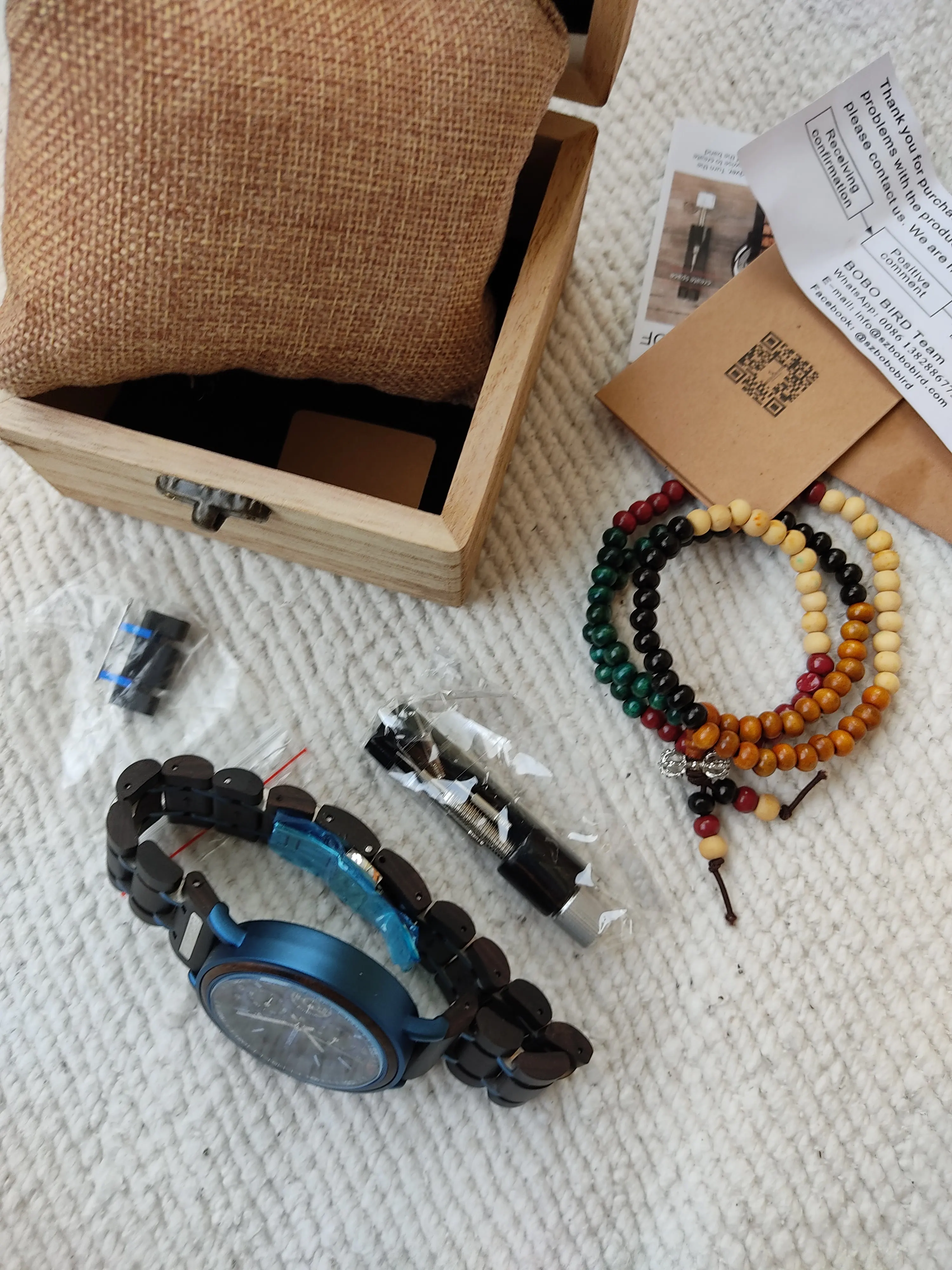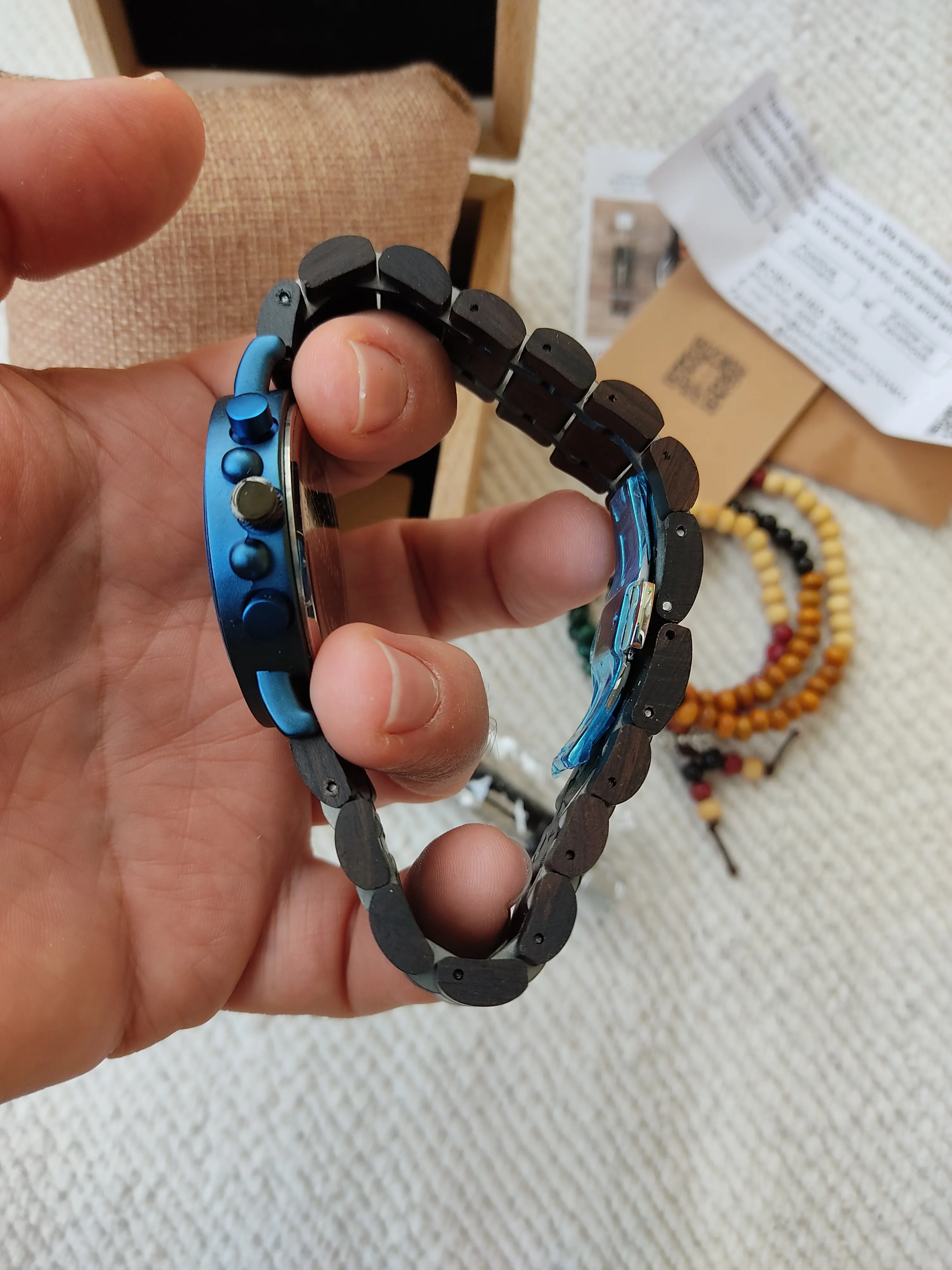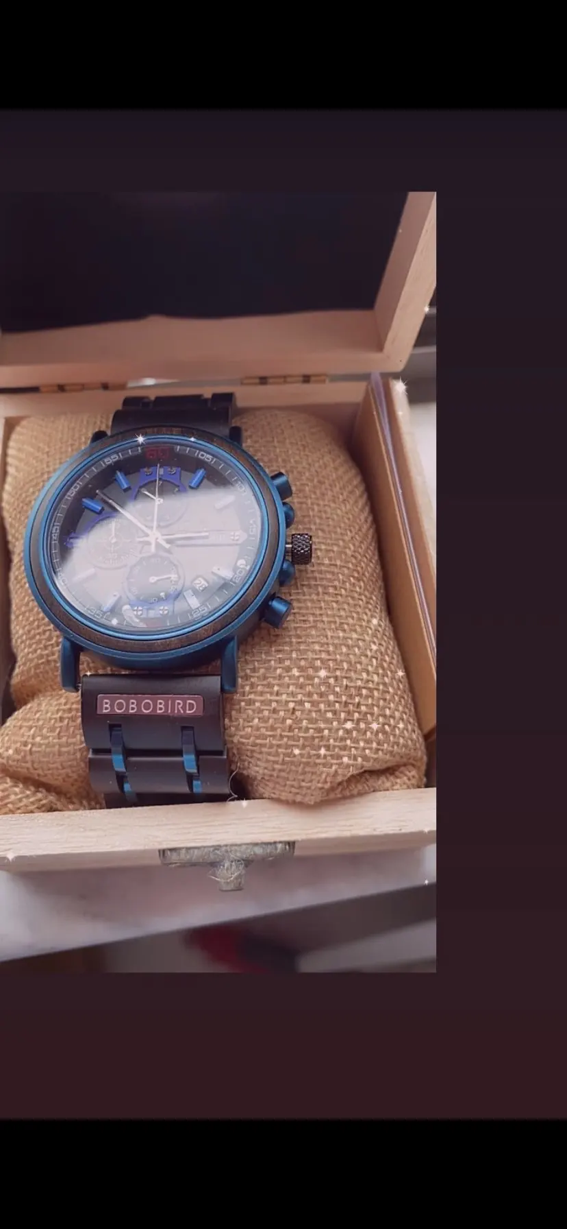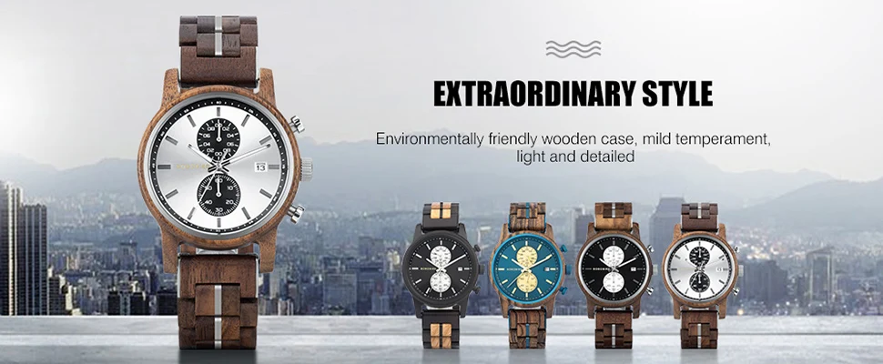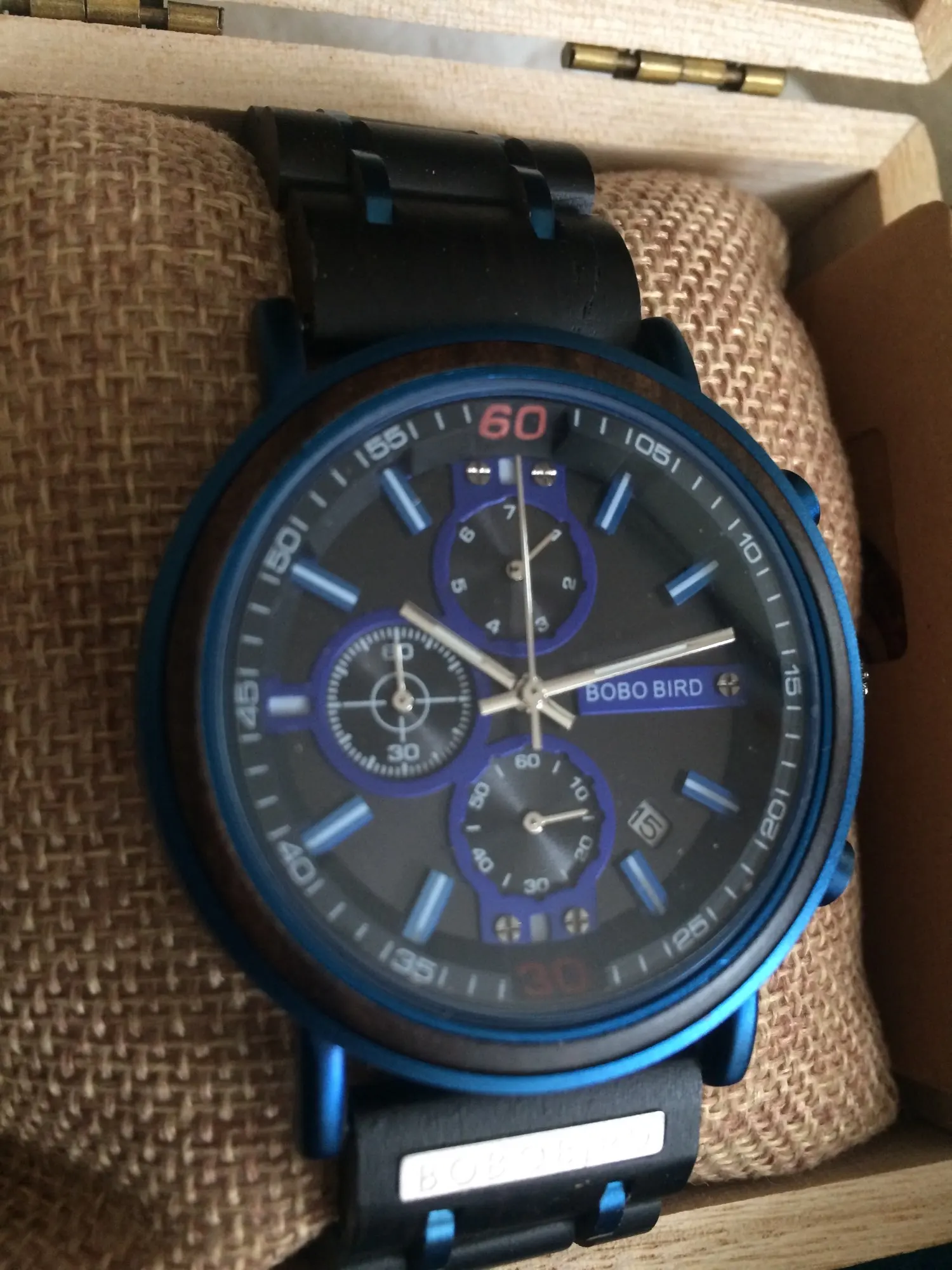 2-е часы от Bobobird. Красивые часы. Не так просто удалить звенья, потому что у меня есть маленькое запястье. Даже с помощью инструмента. Но я сумел и мог это сделать. Деревянный браслет хороший, хронограф работает хорошо. В целом часы кажутся мне легкими, так как я привык носить механические часы. Доставка была около 2 недель. 5 звезд, я рекомендую продавцу.