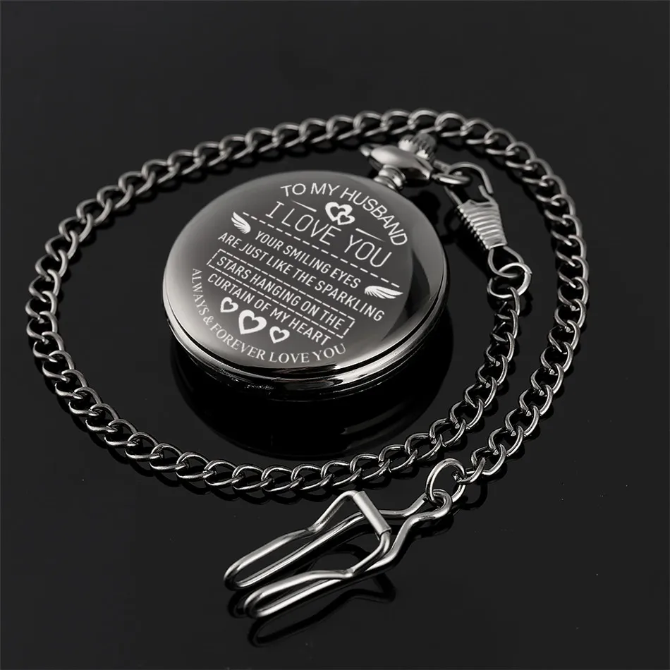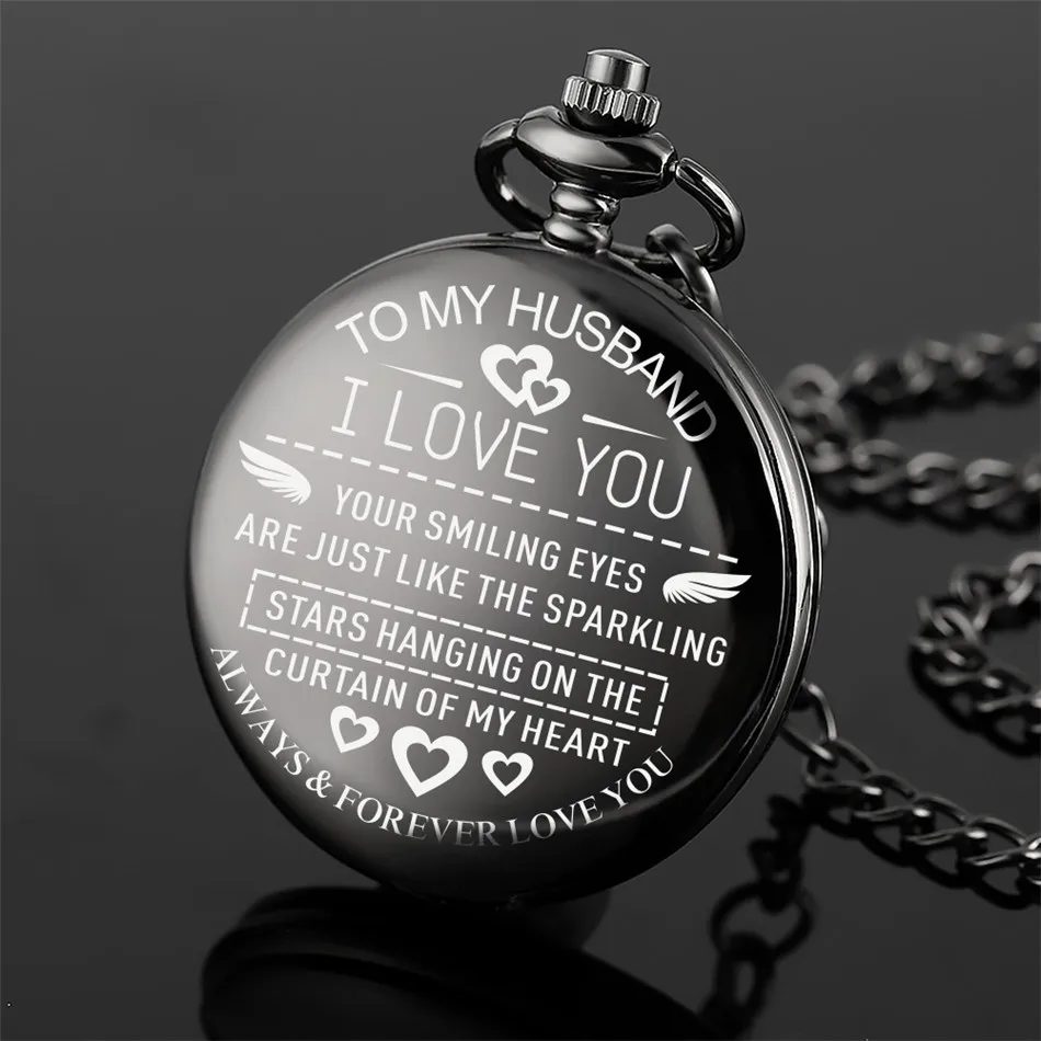 Моему мужу, персонализированные черные кварцевые карманные часы с надписью I Love You, на юбилей, день рождения, винтажные подарочные часы
