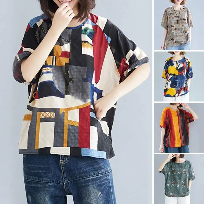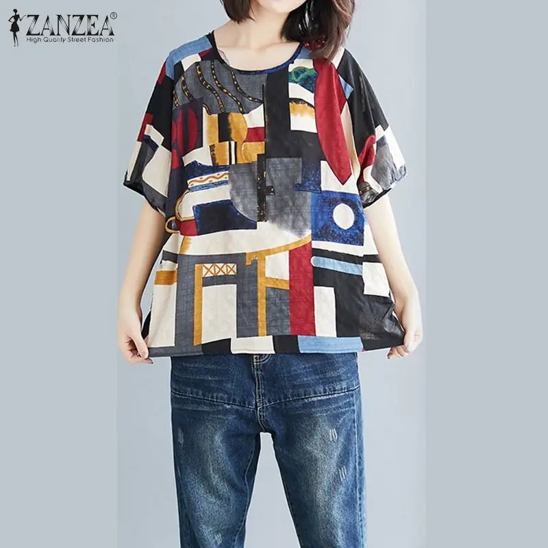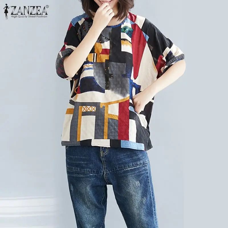 Блузка ZANZEA женская с винтажным цветочным принтом, свободная рубашка в богемном стиле с рукавом до локтя, Повседневная Туника, на лето