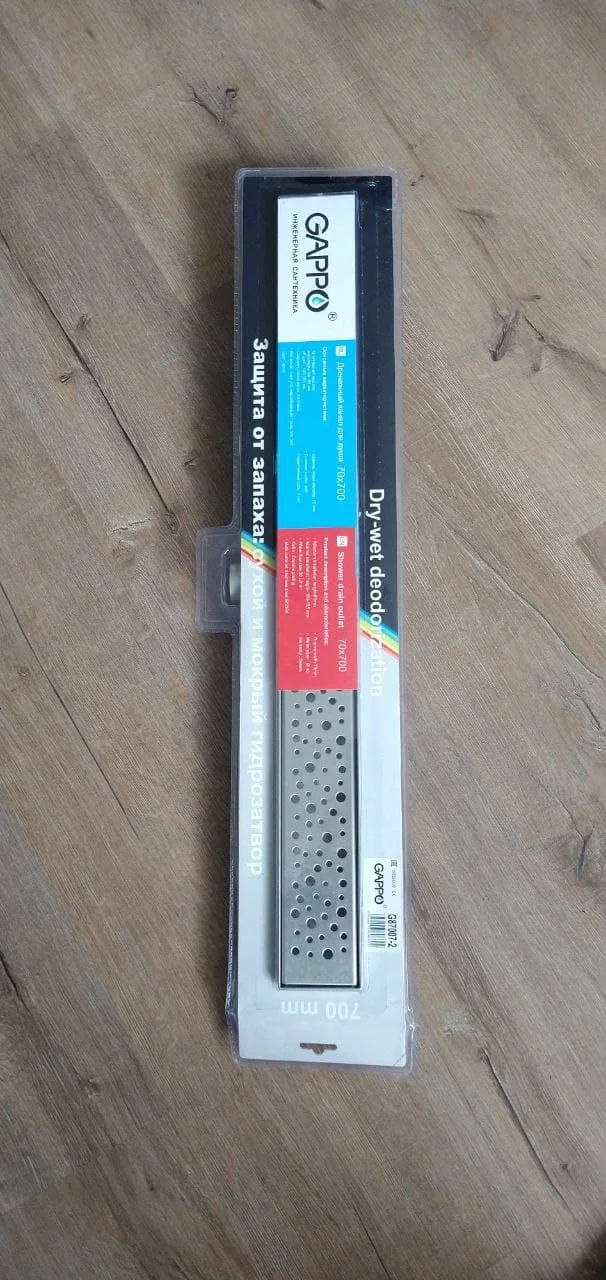 Отличный трап по всем параметрам. Самое главное, то что сделан для Отечественной канализации, есть водяной затвор и не нужно мудрить с диаметрами. Сороковой для душа вполне достаточно. Сделан добротно, нержавейка, увесистый. Упаковка заводская, западный блистер. Всем добра!