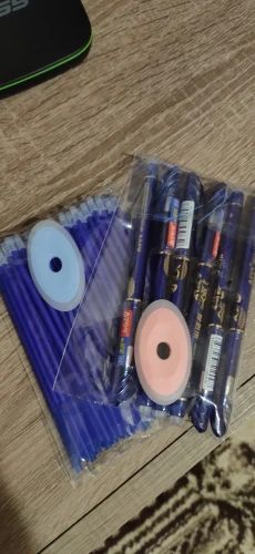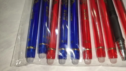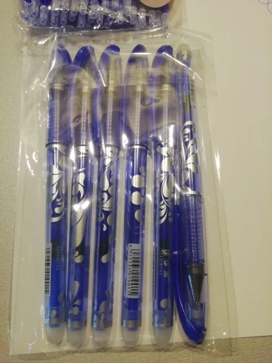 Заказ пришёл быстро. Ручки реально пишут как гелевые! Качество отличное. Обычные ручки, которые можно стирать, сразу видно - они более светло пишут. Эти пишут темно синим, ну в общем гелевые, на вид не отличить от обычных. Стирать тоже отлично выходит, проверял сразу после написания и через 2 часа - следов нет никаких, вообще.