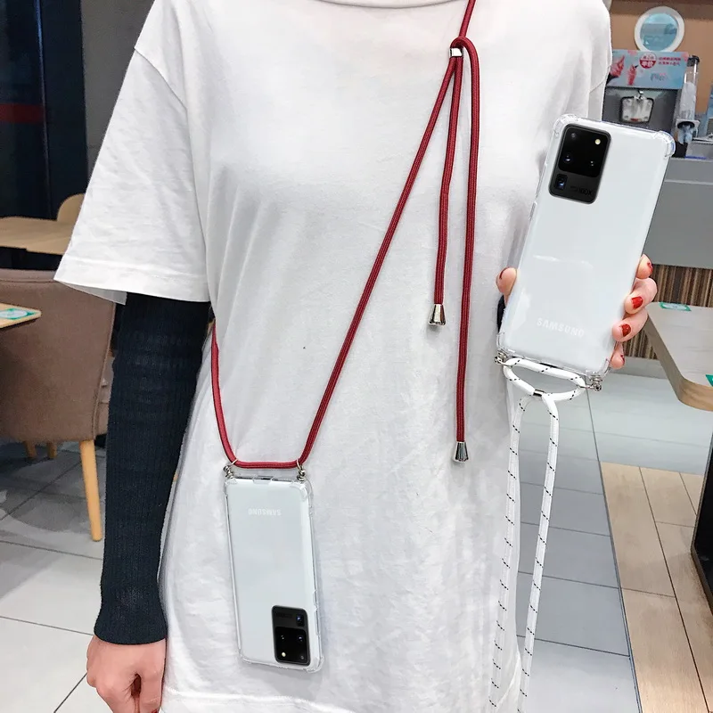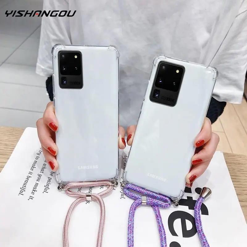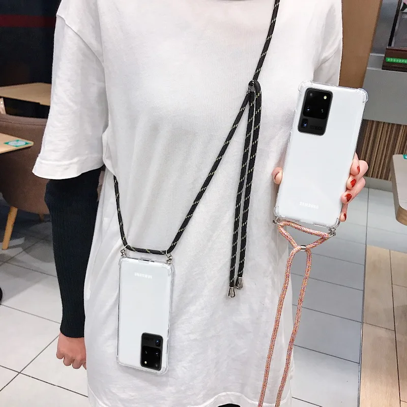 Роскошный прозрачный чехол для телефона, ожерелье через плечо, шнур, ремешки для Samsung Galaxy A51, A71, A70, A50, A81, A91, A52, A72, A32